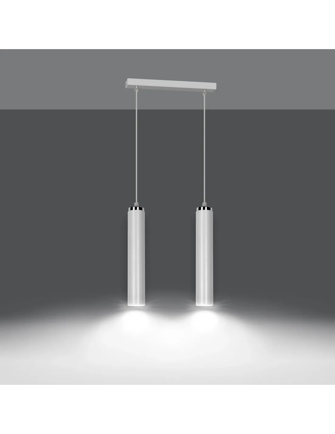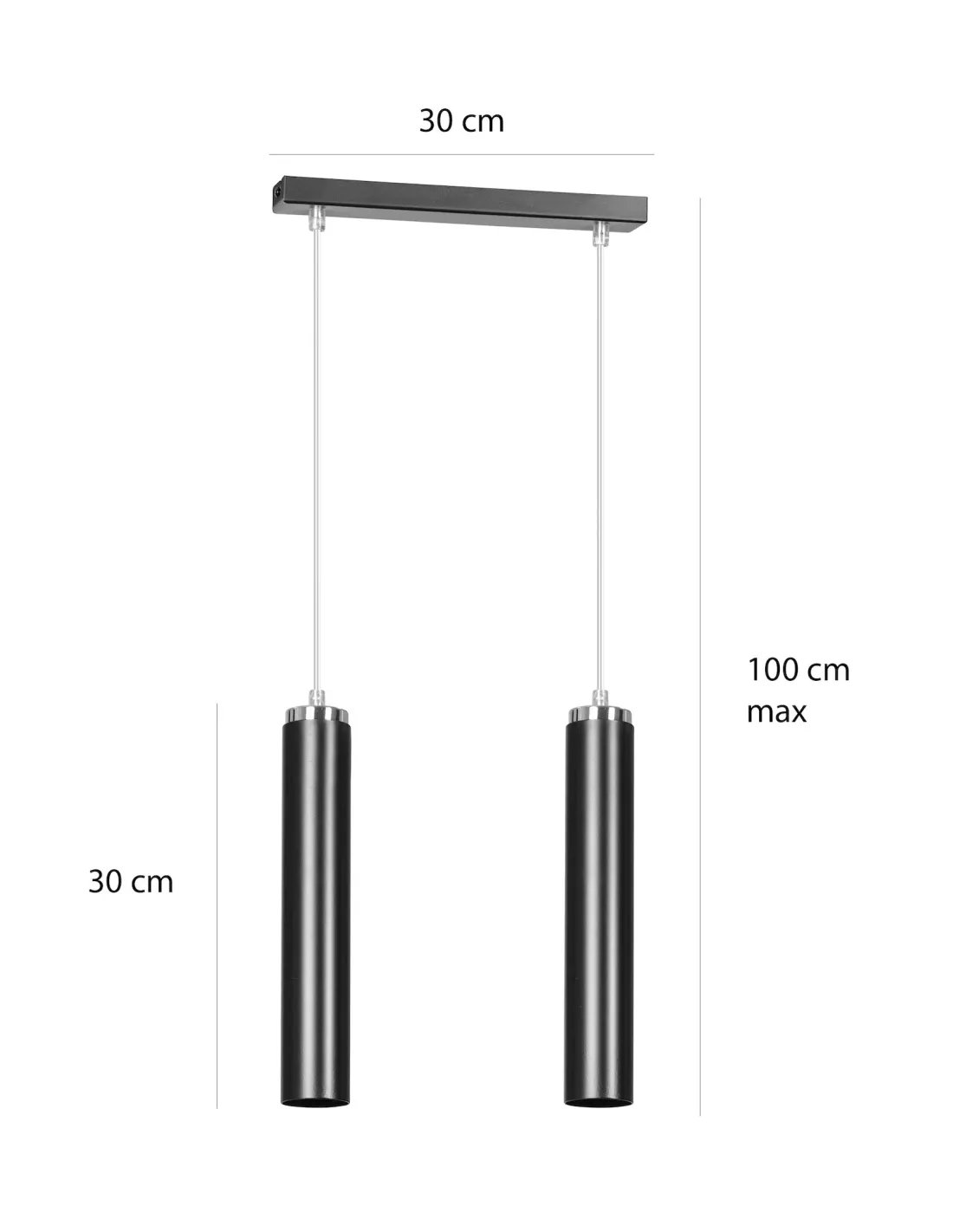 Lampa wykonana została z metalu malowanego proszkowo, co zapewnia nie tylko trwałość, ale również odporność na uszkodzenia i zarysowania. Wariant w kolorze czarnym ze srebrnymi detalami prezentuje się wyjątkowo elegancko, doskonale wpisując się w aranżacje w stylu nowoczesnym, loftowym czy skandynawskim. Dwie smukłe tuby zawieszone na wspólnej podsufitce tworzą spójną i nowoczesną formę o szerokości 30 cm.