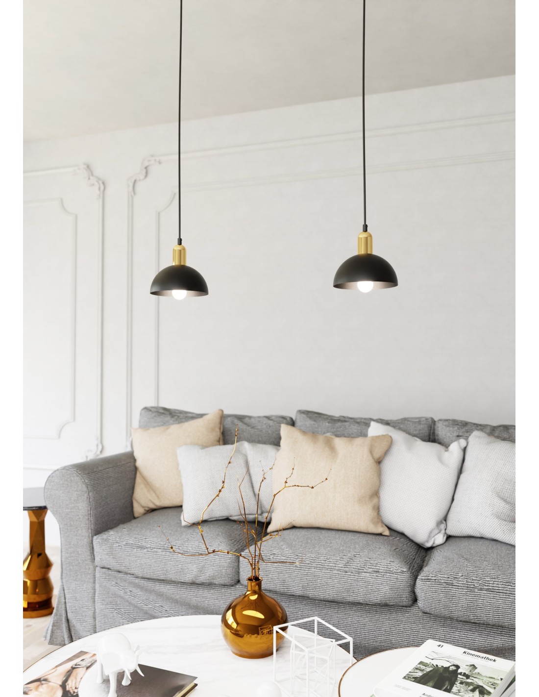 MOTO to seria nowoczesnych lamp wiszących, inspirowanych stylem loftowym – surowym, ale eleganckim, minimalistycznym, ale wyrazistym. Wersja jednopunktowa to idealny wybór do subtelnego podkreślenia wybranej strefy wnętrza, np. nad stolikiem nocnym, w korytarzu lub jako akcent w kuchni. Jej prosta forma doskonale oddaje ducha industrialnych wnętrz, zachowując przy tym elegancję dzięki złotym detalom.