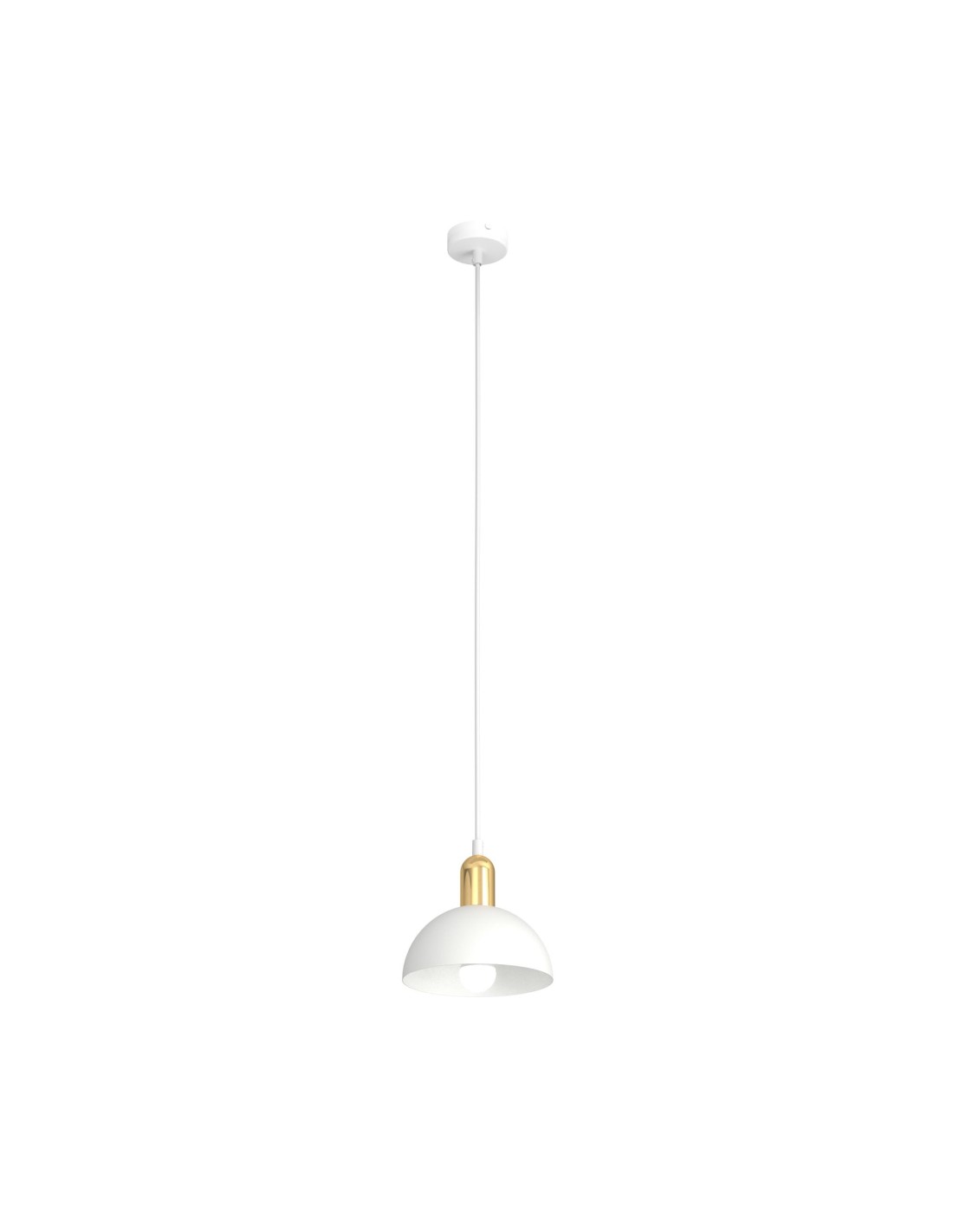 Prosta konstrukcja lampy podkreśla estetykę minimalizmu, a złote akcenty wnoszą elegancję i ponadczasowy styl. Jednopunktowe źródło światła typu E27 zapewnia wystarczające oświetlenie dla mniejszych przestrzeni, jednocześnie tworząc przytulny klimat.