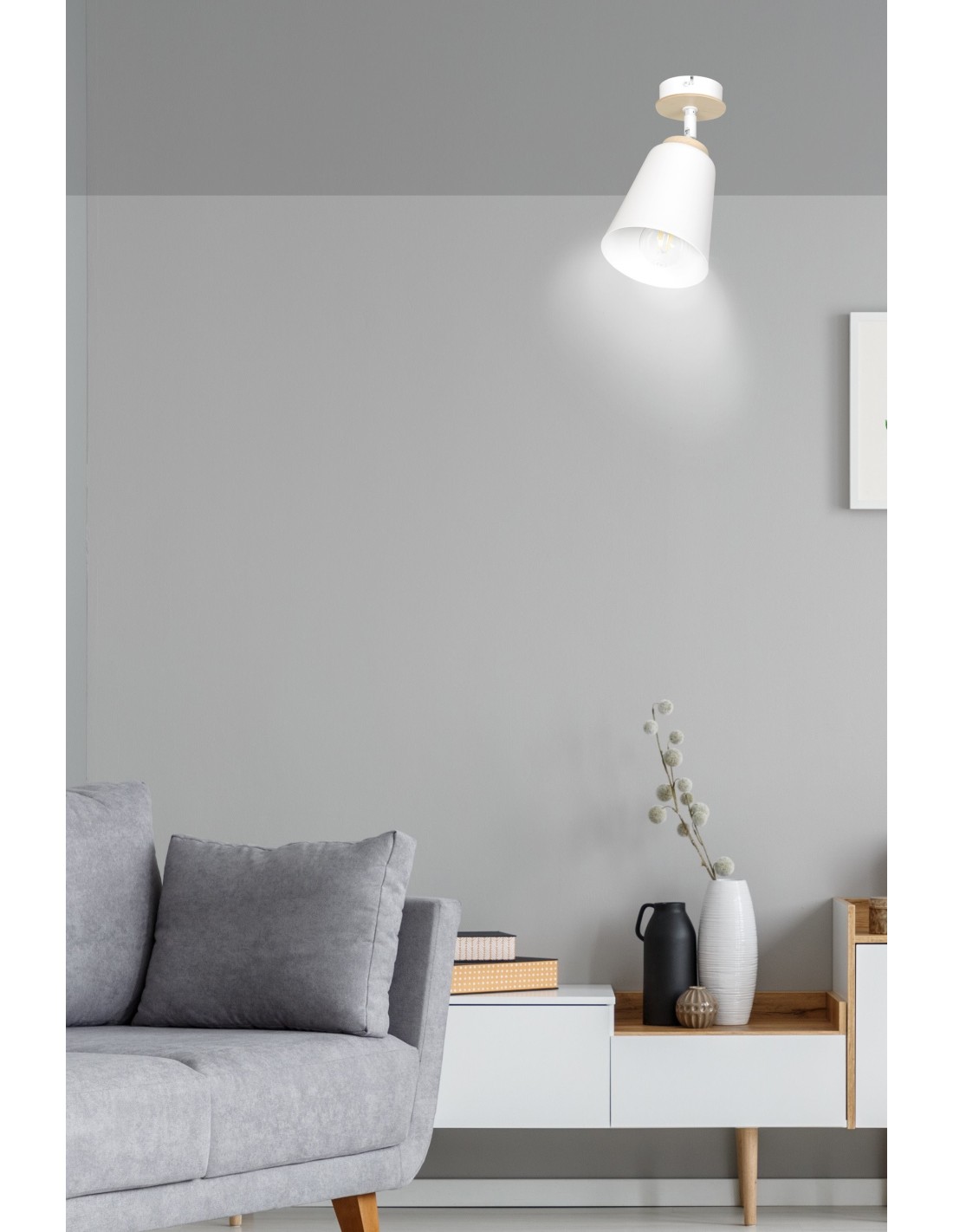 Spot ATLAS K1 to lampa stworzona z myślą o miłośnikach prostej i funkcjonalnej estetyki. Jej cylindryczny klosz o wymiarach 15x13 cm wykonany z metalu, w połączeniu z naturalnym drewnianym akcentem, tworzy harmonijną i elegancką całość. Brak możliwości regulacji wysokości rekompensowany jest zwartą konstrukcją, która sprawia, że lampa nie przytłacza nawet najmniejszych pomieszczeń.