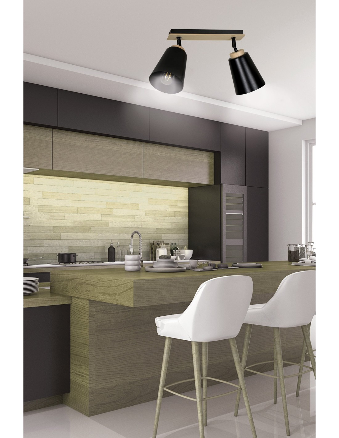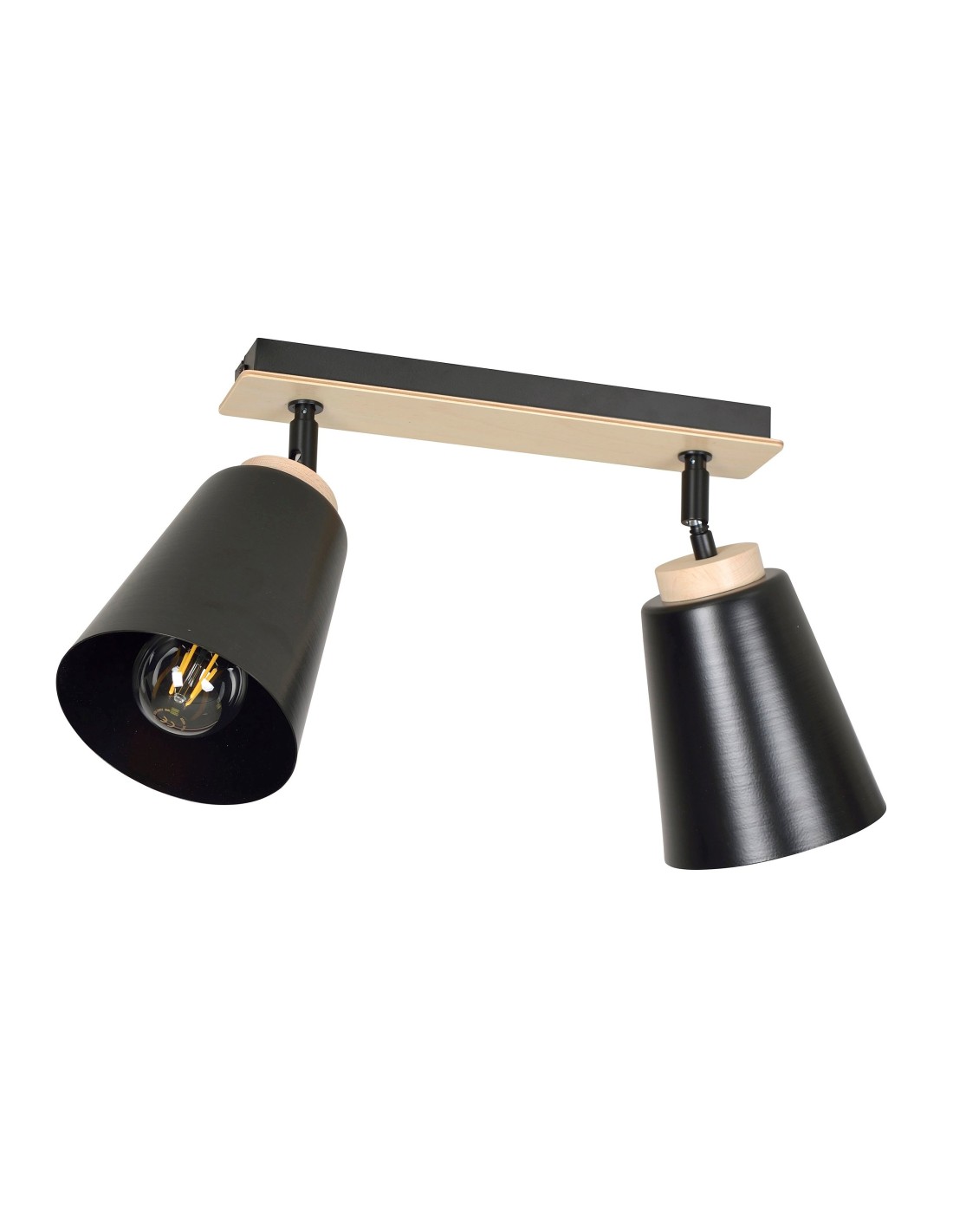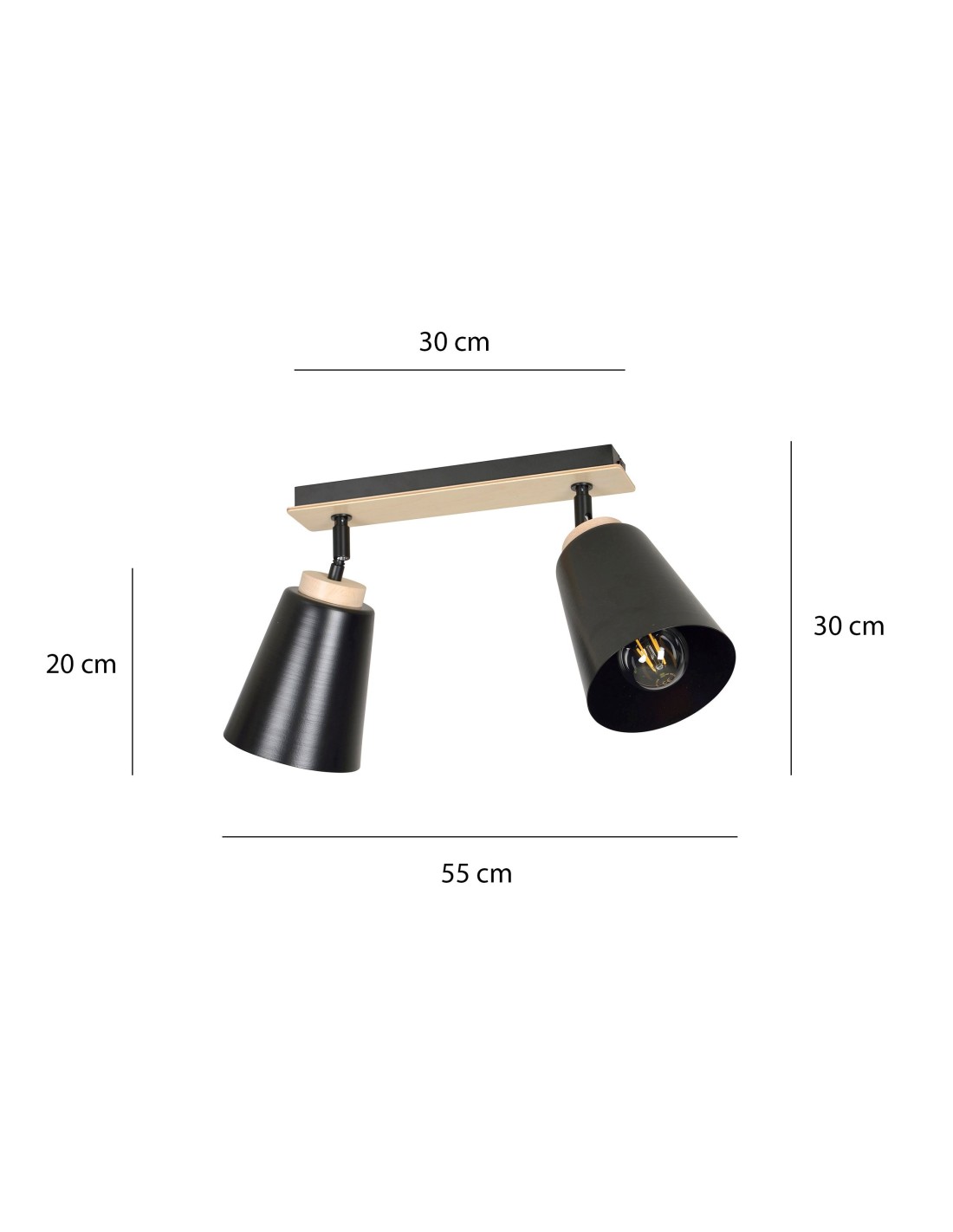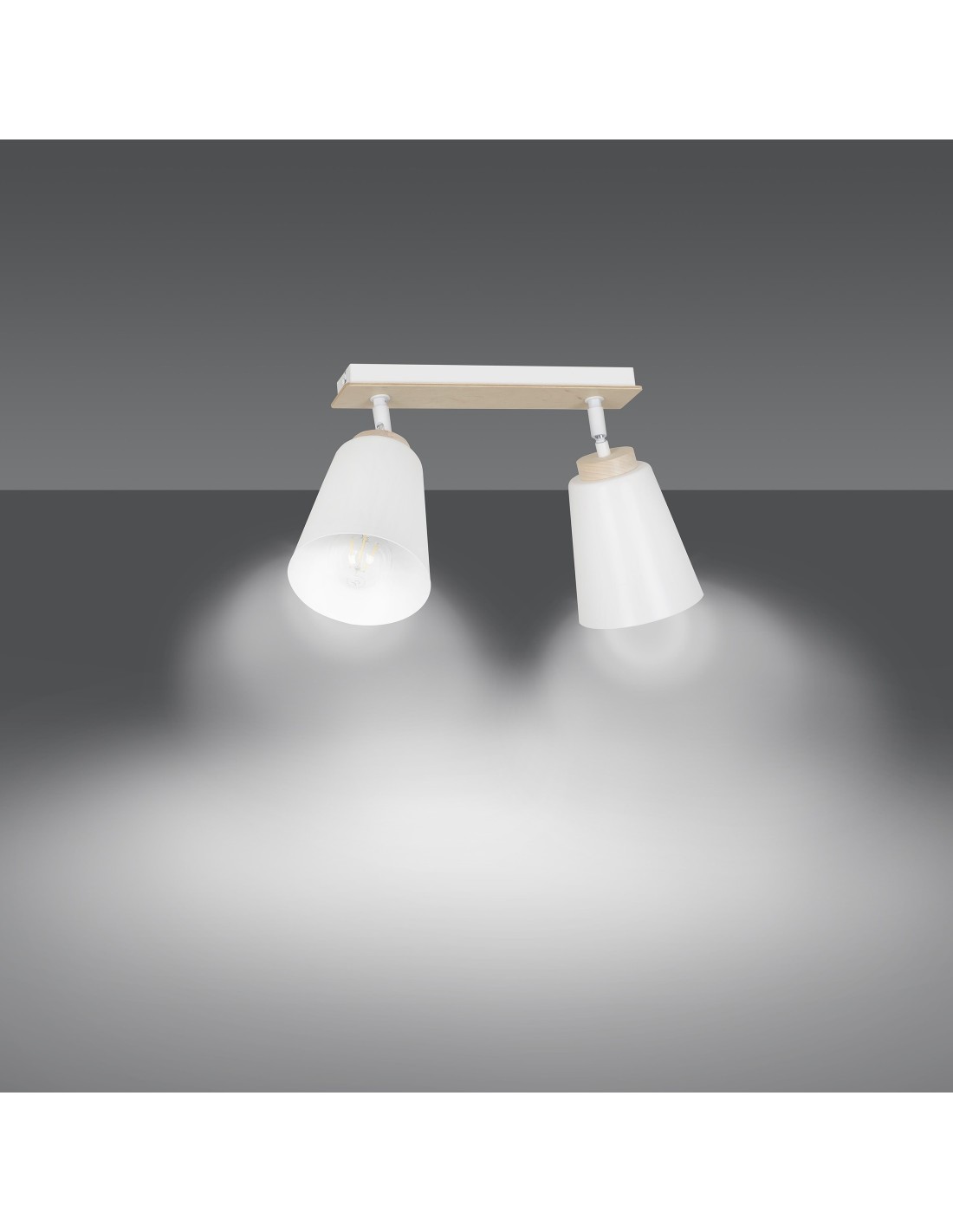 Spot ATLAS 2 to doskonałe rozwiązanie dla miłośników prostych i funkcjonalnych form. Każdy z kloszy ma wymiary 15x13 cm, a ich metalowa konstrukcja w połączeniu z naturalnym drewnem tworzy subtelny kontrast i wizualną harmonię. Brak możliwości regulacji wysokości nie ogranicza możliwości aranżacyjnych, a lampa świetnie komponuje się nawet w niskich przestrzeniach.
