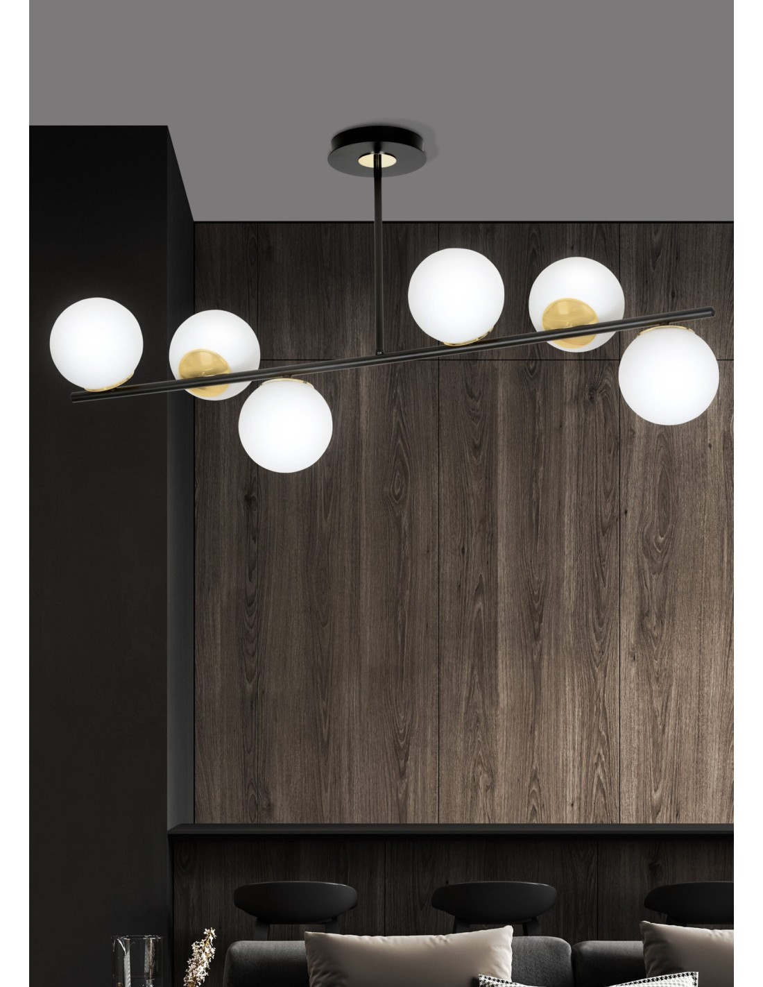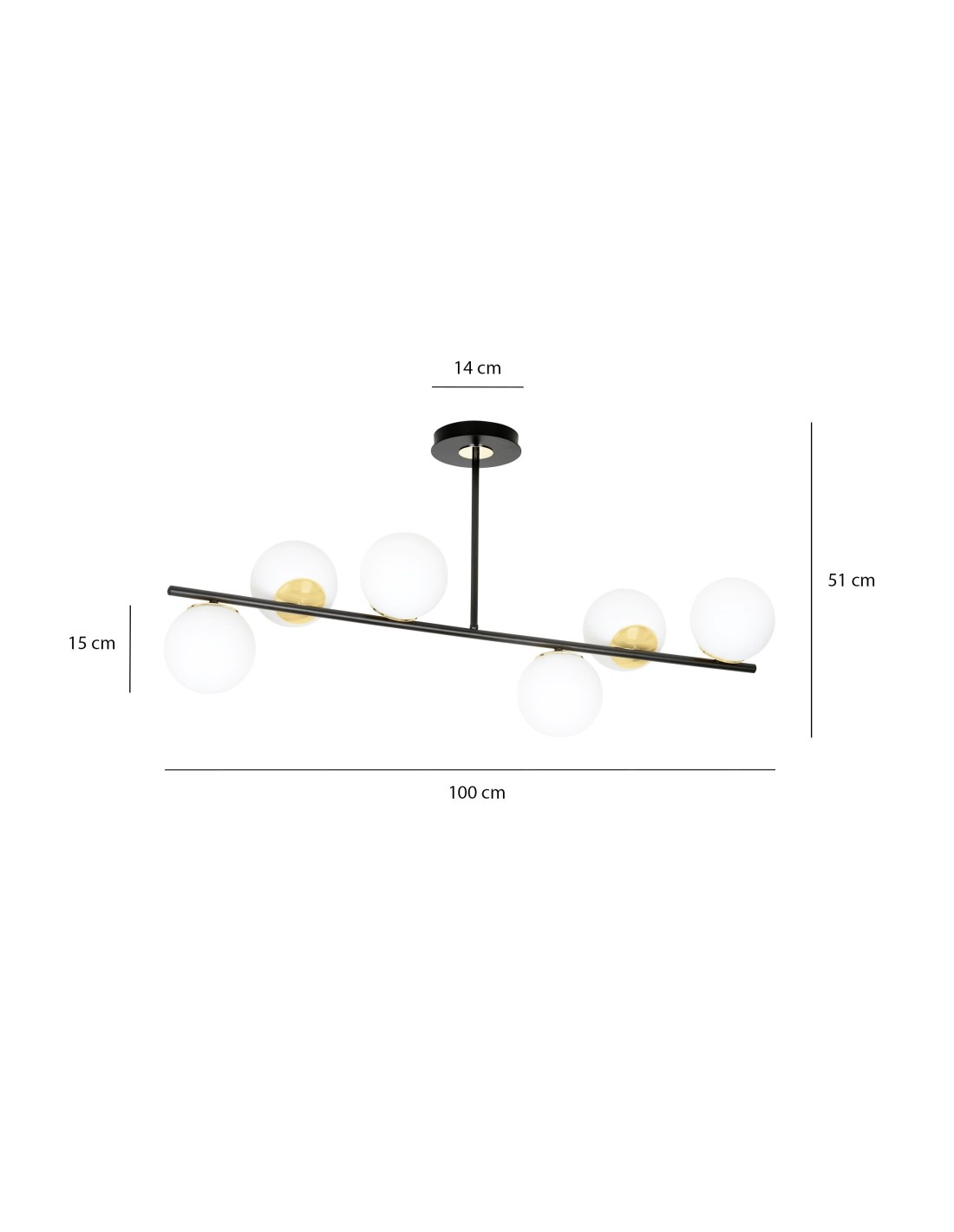 Model FLOKI 6 wyposażony został w 6 źródeł światła, co czyni go idealnym rozwiązaniem do dużych wnętrz – salonu, jadalni czy przestronnej sypialni. Jego szerokość 100 cm pozwala równomiernie oświetlić całe pomieszczenie bez efektu oślepienia, a przy tym stanowi wyjątkowy element wystroju.