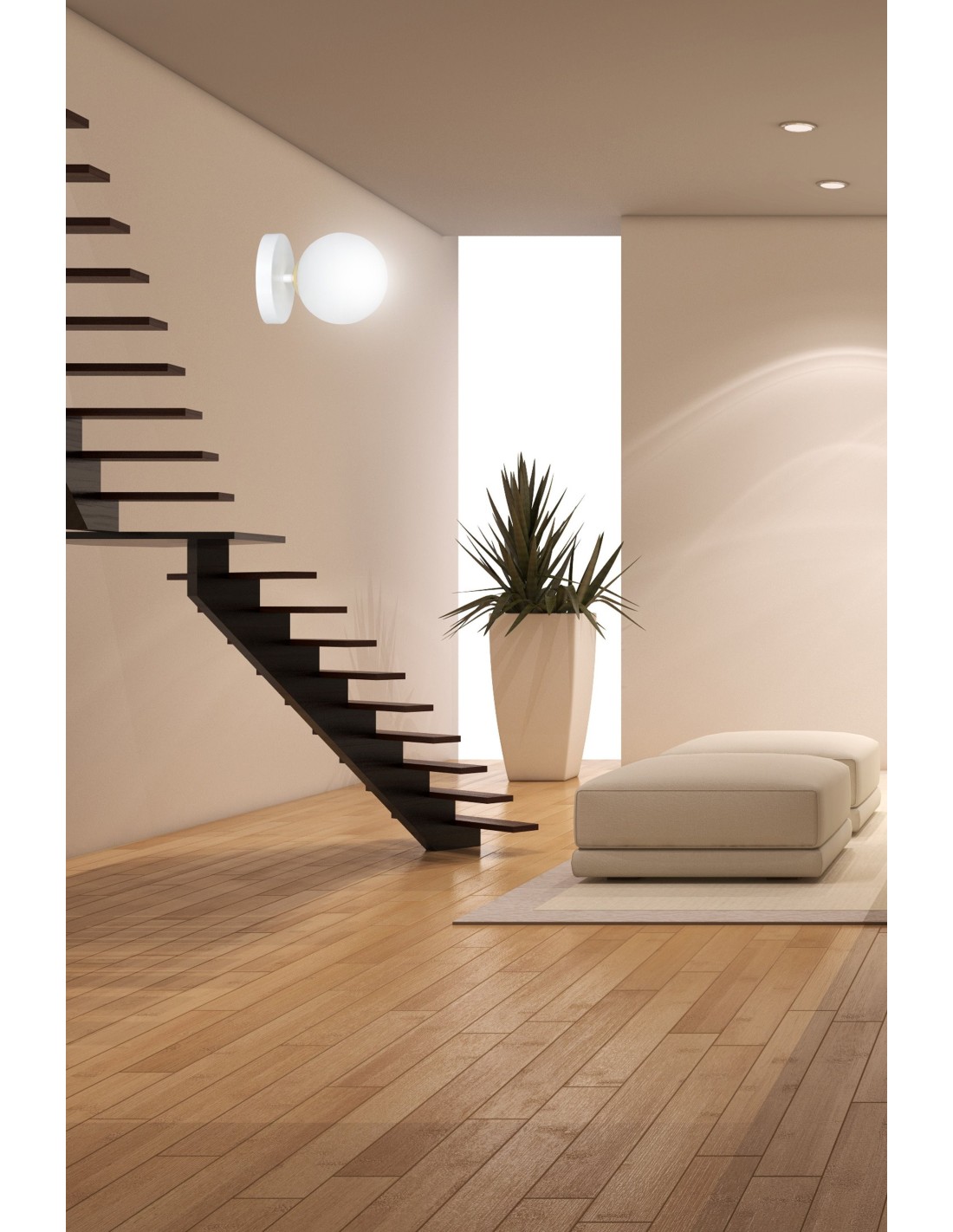 Dzięki niewielkim wymiarom kinkiet FLOKI idealnie sprawdzi się również w niższych pomieszczeniach. Jego forma nie zaburza proporcji wnętrza, a złote detale nadają mu prestiżu. Lampa doskonale wygląda jako pojedynczy akcent świetlny, jak i część większej kompozycji z plafonami z tej samej serii – razem tworzą spójną i efektowną aranżację świetlną.