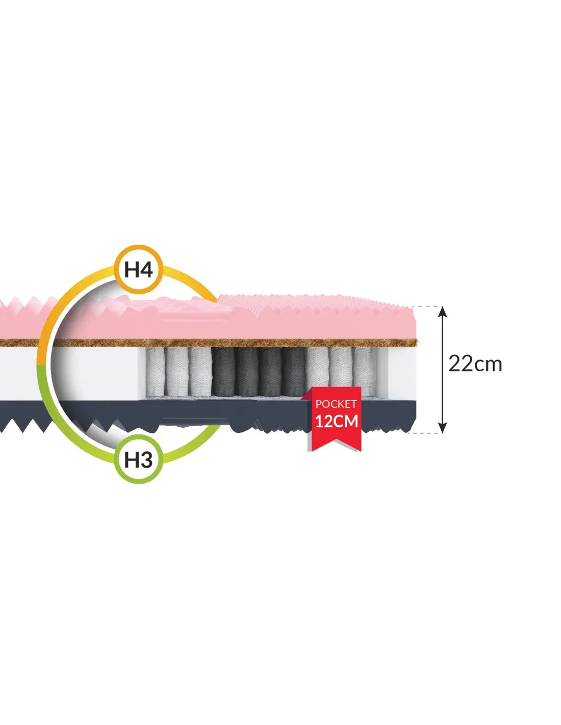 • Dwustronny materac o zróżnicowanej twardości – H3 i H4