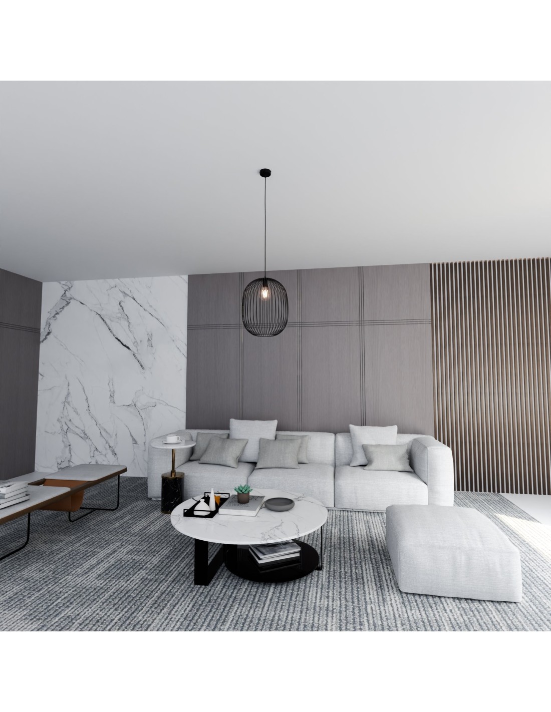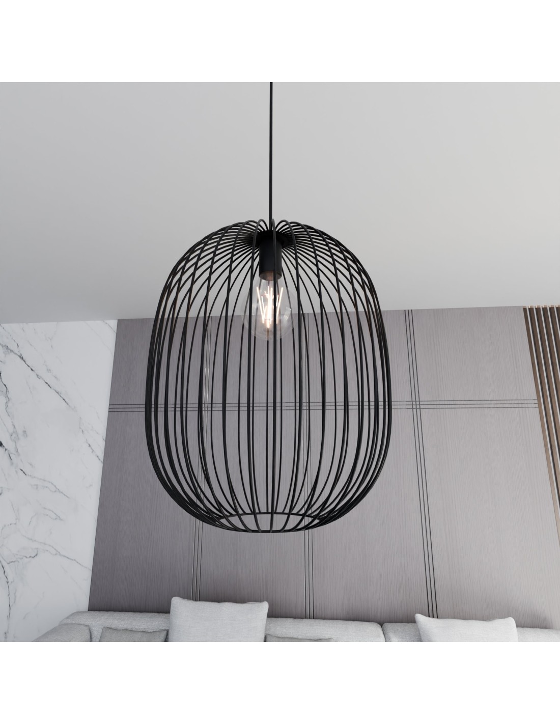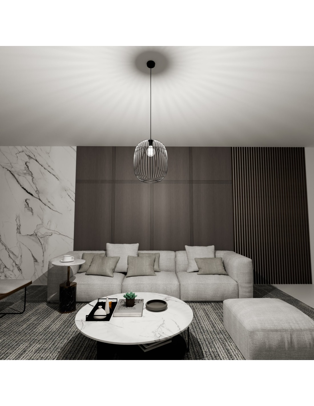 ONYX to lampa wisząca, która stanowi połączenie minimalizmu, industrialnej estetyki oraz nowoczesnej elegancji. Jej duży, druciany klosz o owalnym kształcie natychmiast przyciąga uwagę, stając się jednym z najbardziej wyrazistych elementów aranżacji. Dzięki temu ONYX nie jest tylko źródłem światła, ale również designerską dekoracją wnętrza. Doskonale sprawdzi się w przestrzeniach wymagających mocnego akcentu wizualnego – salonach, jadalniach, biurach czy loftowych mieszkaniach.