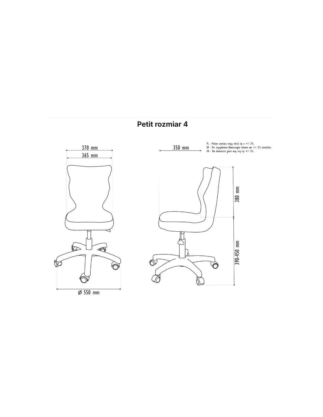 Model PETIT wyposażono w płynną regulację wysokości dzięki podnośnikowi gazowemu, pozwalając na idealne dopasowanie krzesła do wzrostu dziecka. Stabilna, teleskopowa osłonka podnośnika oraz miękkie kółka zapewniają pełne bezpieczeństwo i komfort — kółka nie rysują podłogi, a ich delikatna amortyzacja pozwala na ciche i lekkie przemieszczanie. Solidna podstawa gwarantuje stabilność, dzięki czemu dziecko może czuć się pewnie w każdej pozycji.