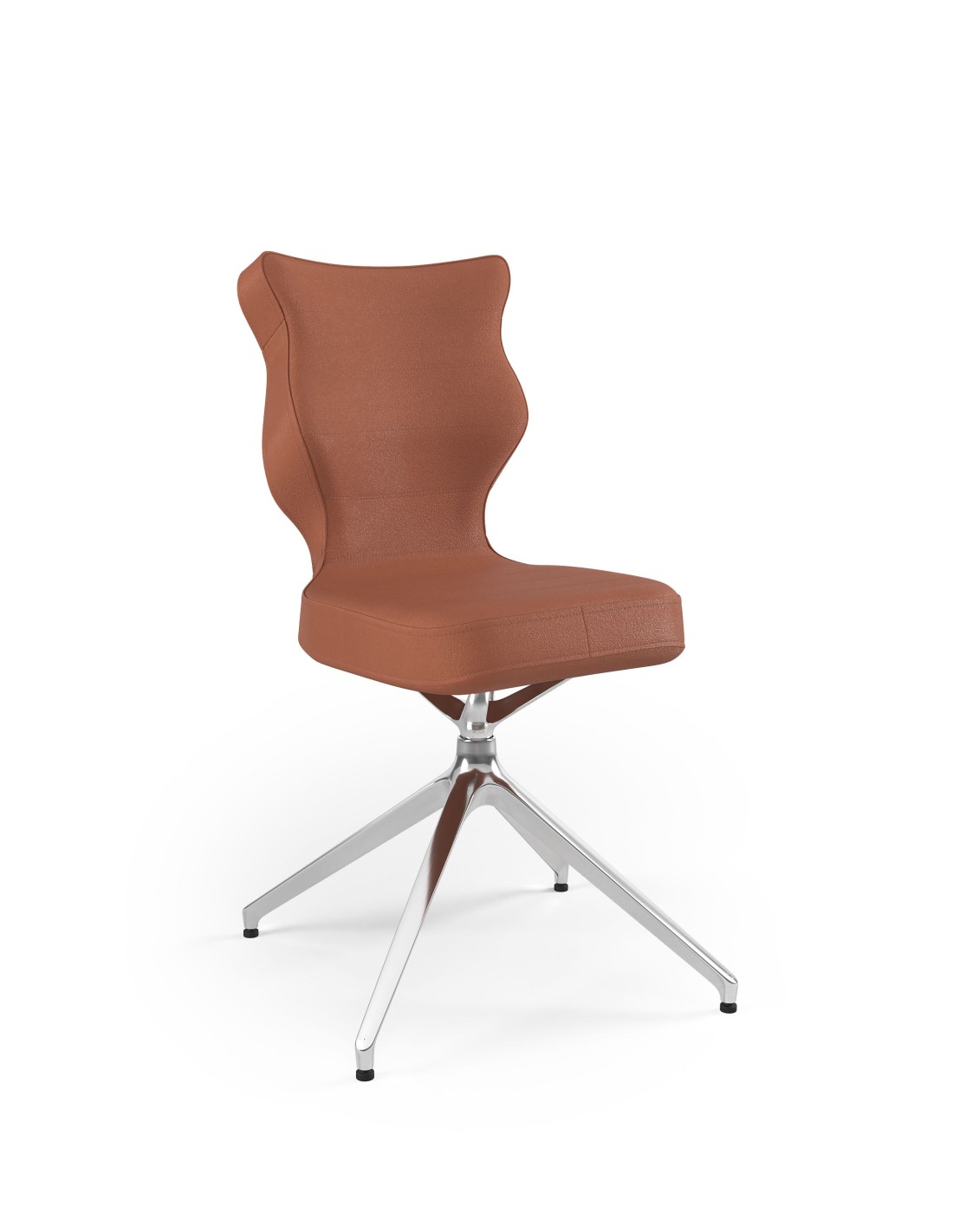Istotną cechą modelu jest również mechanizm obrotowy 360°, który umożliwia swobodną rotację bez konieczności podnoszenia krzesła. Pozwala to na płynne wykonywanie codziennych czynności, takich jak obracanie się w stronę współpracowników czy zmiana pozycji względem blatu. Całość opiera się na stabilnej czteroramiennej bazie z aluminium — materiału lekkiego, niezwykle wytrzymałego i odpornego na obciążenia. Dzięki temu krzesło zachowuje stabilność na różnych powierzchniach, a jego użytkowanie jest bezpieczne i komfortowe.