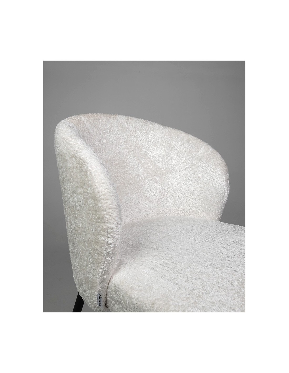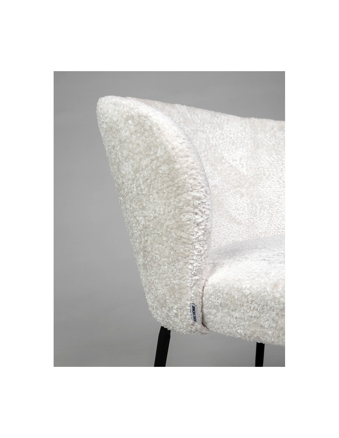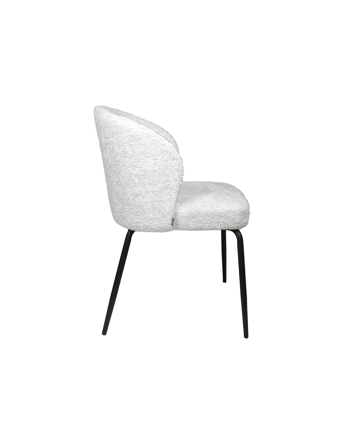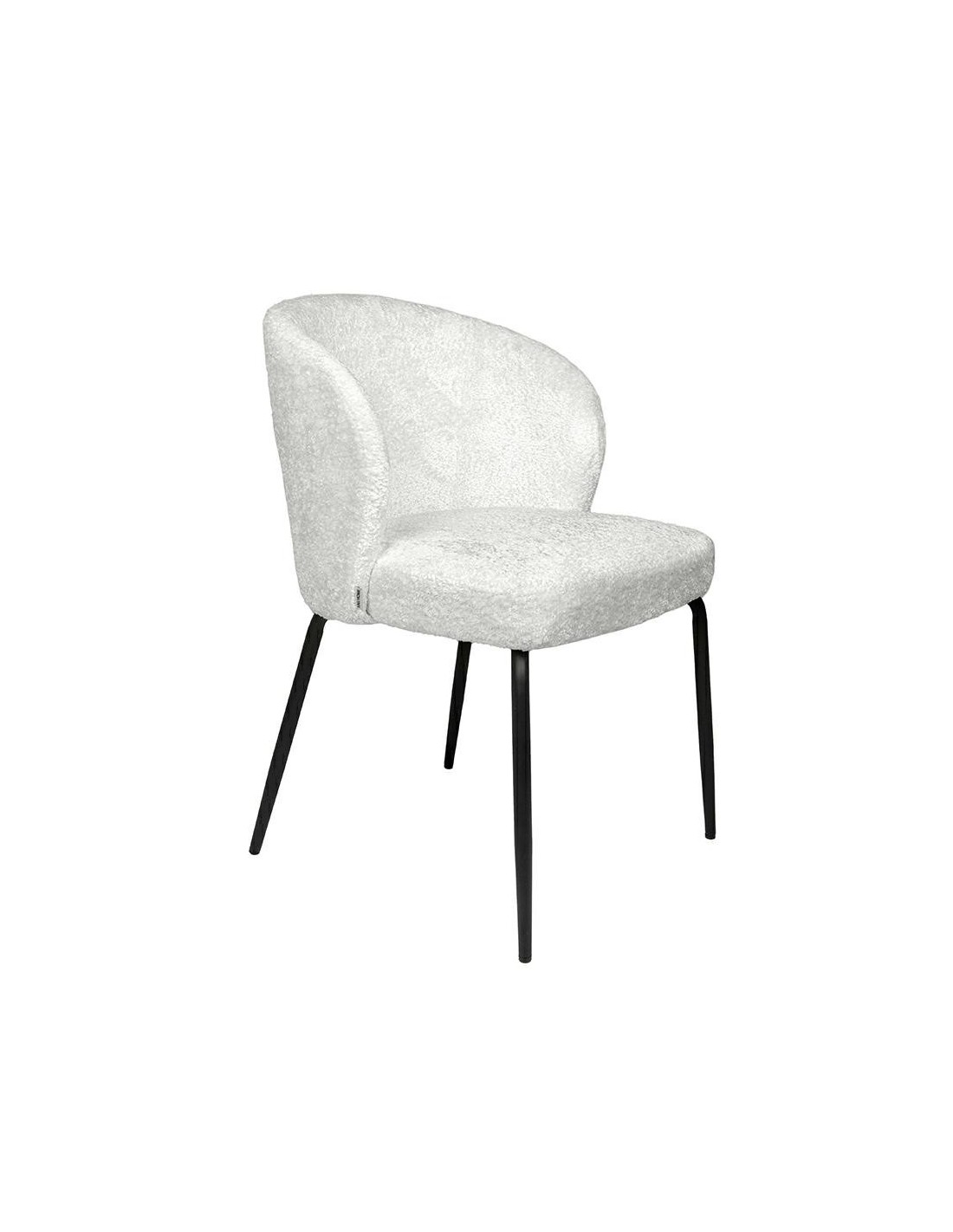 Zaokrąglone oparcie harmonijnie współgra z wygodnym, szerokim siedziskiem, tworząc idealnie ergonomiczną całość, która gwarantuje komfort nawet podczas długiego siedzenia. Wspierające konstrukcję smukłe nogi wykonane zostały z czarnego metalu – ich minimalizm nadaje krzesłu nowoczesny charakter, a jednocześnie zapewnia doskonałą stabilność. Kontrast pomiędzy bielą tapicerki a czernią podstawy dodaje meblowi wyrazistego, designerskiego akcentu.