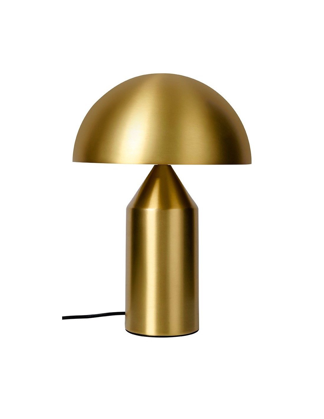 Lampa Fungo wyróżnia się nie tylko oryginalnym kształtem inspirowanym naturą, ale także precyzyjnie wykonaną konstrukcją. Jej metalowa kopułka naśladująca kapelusz grzyba harmonijnie komponuje się z szeroką podstawą, tworząc zwartą i stabilną formę. Kolorystyka w tonacji złotej z mosiężnymi akcentami nadaje całości ekskluzywnego charakteru.