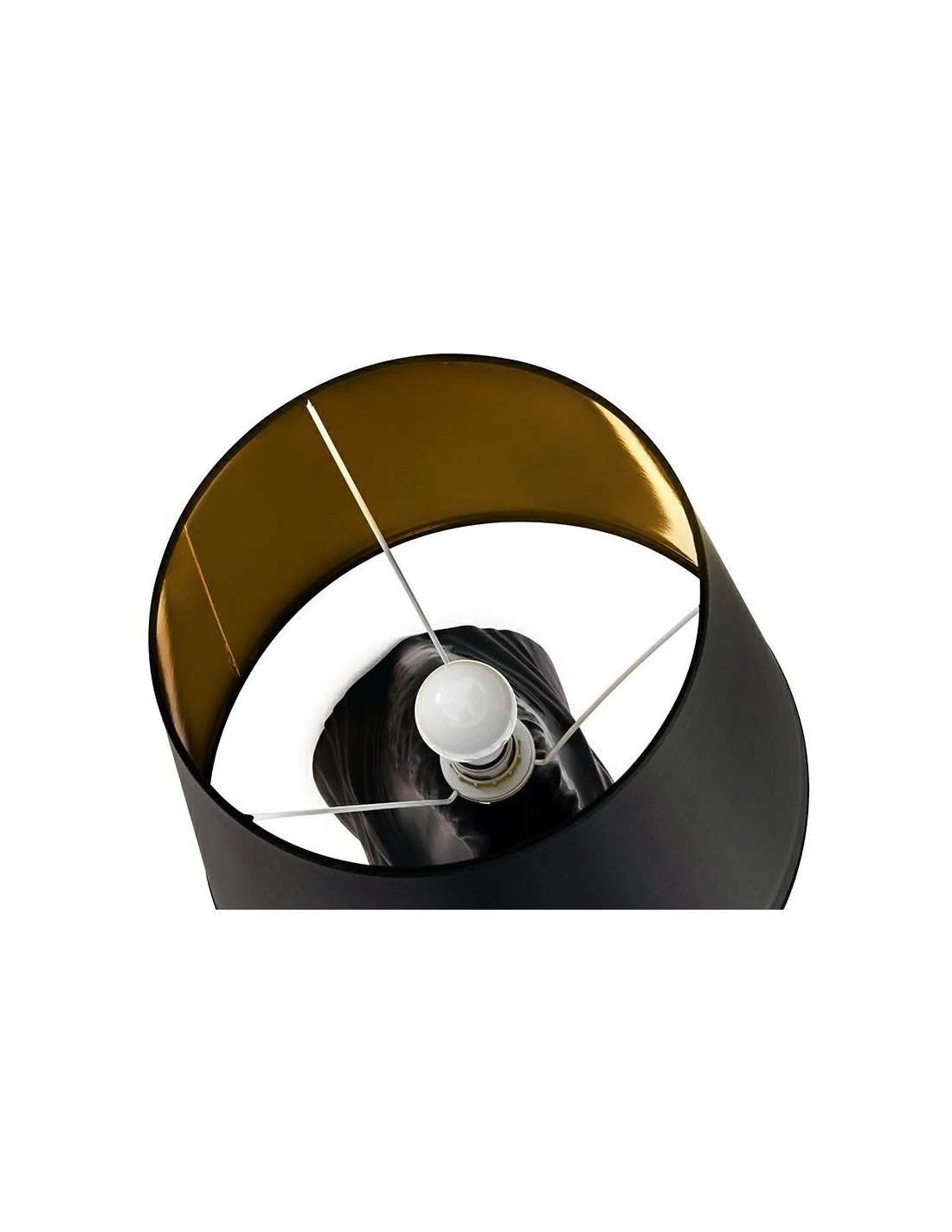 - Dwukolorowy abażur: czarny z zewnątrz, złoty wewnątrz