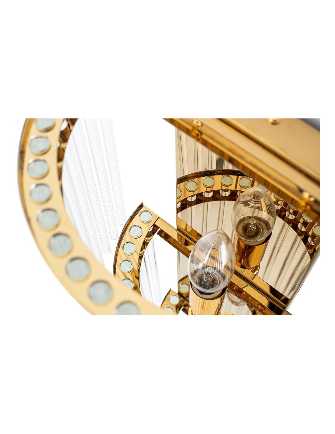 MOOSEE ESTRO przyciąga wzrok dekoracyjnym układem kloszy, które zostały rozmieszczone w formie kaskady, tworząc efekt wizualnej lekkości i rozproszonego światła. Zastosowanie przezroczystego szkła pozwala na subtelne przebijanie się światła, co w połączeniu z złotą konstrukcją daje niezwykle elegancki efekt końcowy.