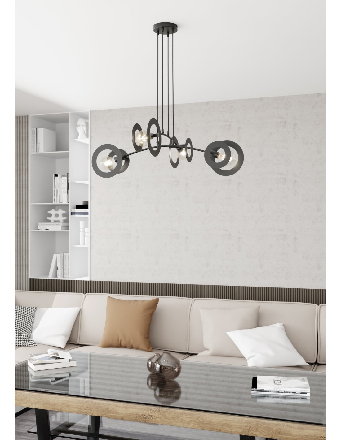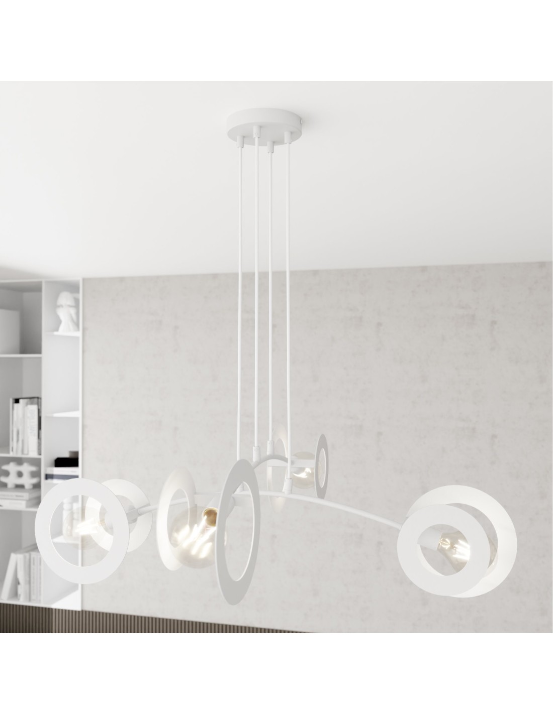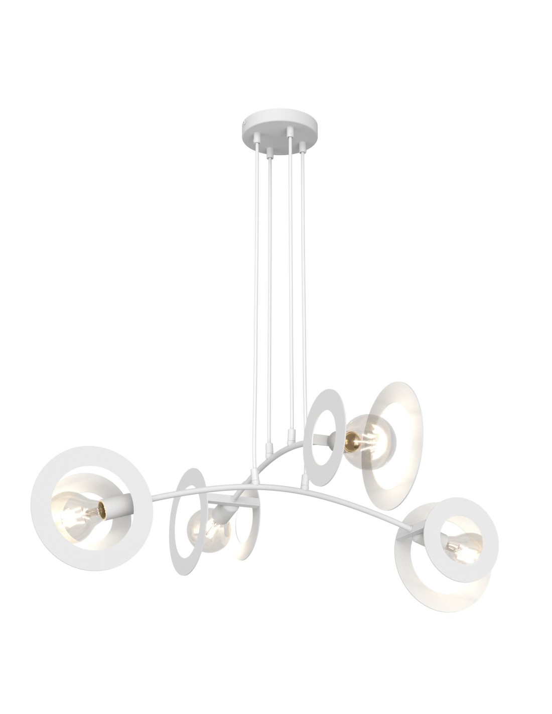 Lampa EUFORIA to propozycja dla miłośników nowoczesnych form i efektownego designu. Jej konstrukcja oparta na geometrycznych kołach od razu przyciąga uwagę, nadając wnętrzu niebanalny, dynamiczny charakter. Model z czterema źródłami światła zapewnia maksymalne doświetlenie przestrzeni, a dzięki odsłoniętym żarówkom rozprasza światło równomiernie we wszystkich kierunkach, tworząc przy tym przyjazną i pełną energii atmosferę.