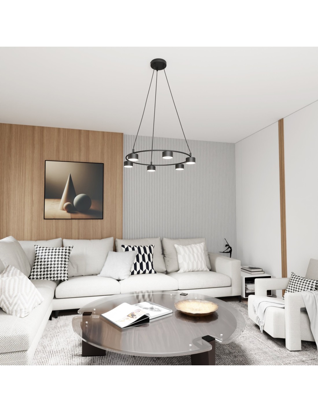 Seria STARLIT to nie tylko estetyka, ale także funkcjonalność. Sześć źródeł światła typu GX53 zapewnia równomierne oświetlenie, a ich widoczna forma nadaje lampie nieco surowego, designerskiego wyrazu. Konstrukcja lampy pozwala na jej wykorzystanie zarówno jako główne źródło światła w salonie, jak i jako ozdobny akcent świetlny w sypialni czy gabinecie.