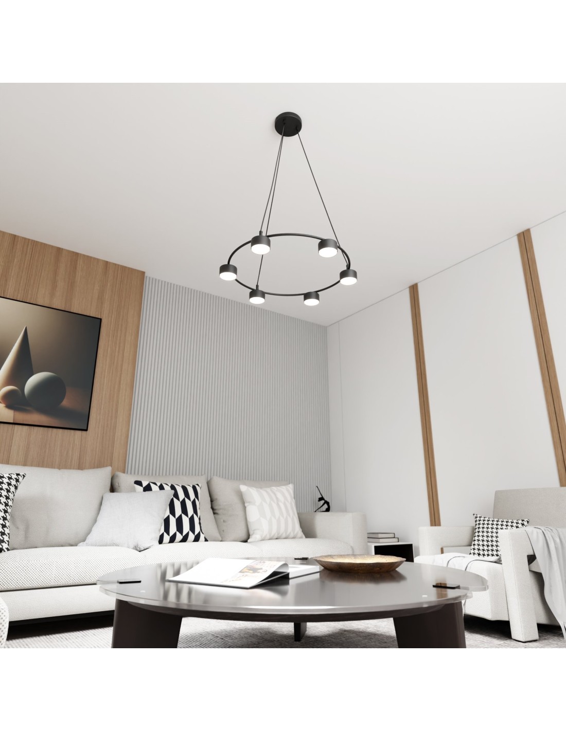 Lampa wisząca STARLIT 6 EMIBIG ma elegancki, nowoczesny wygląd i równomiernie rozświetla pokój.