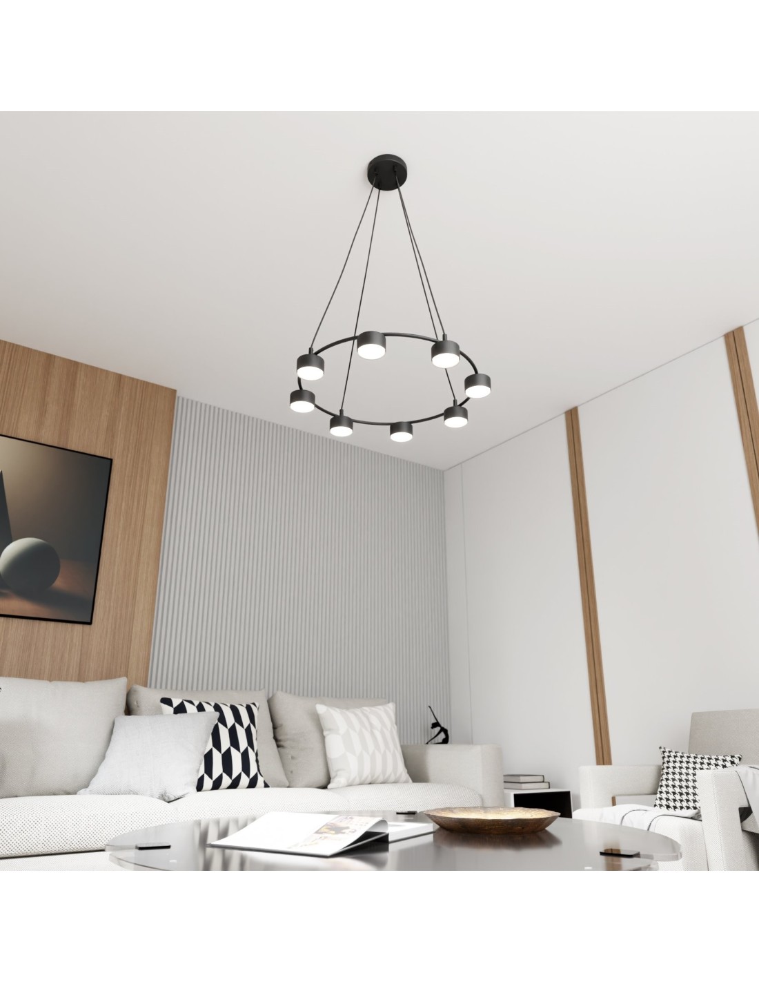 Regulowana długość zawieszenia pozwala precyzyjnie dopasować wysokość montażu do wysokości pomieszczenia oraz indywidualnych preferencji użytkownika. Lampa dostępna jest w kolorze czarnym i białym, co pozwala na łatwe wkomponowanie jej w niemal każdą aranżację.