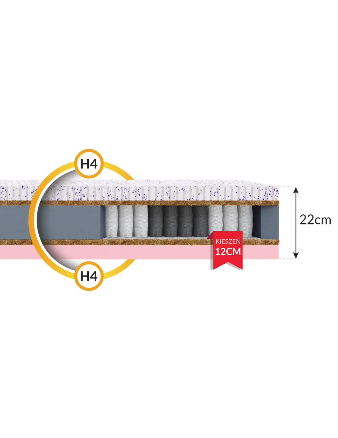 • Warstwa kokosa – przewiewność, higiena i lekka sztywność