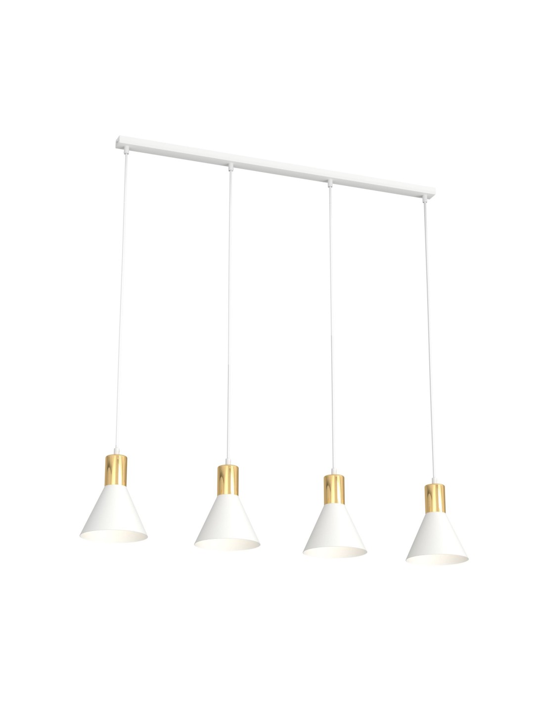 Lampa ROSA 4 to połączenie minimalistycznej formy z eleganckim wykończeniem, które idealnie wpisuje się w loftowe trendy wnętrzarskie. Stożkowe klosze w kolorze czarnym z subtelnymi złotymi akcentami tworzą wyrafinowany kontrast i nadają lampie wyjątkowego charakteru. Jej design przyciąga wzrok i doskonale współgra z nowoczesnymi aranżacjami wnętrz.