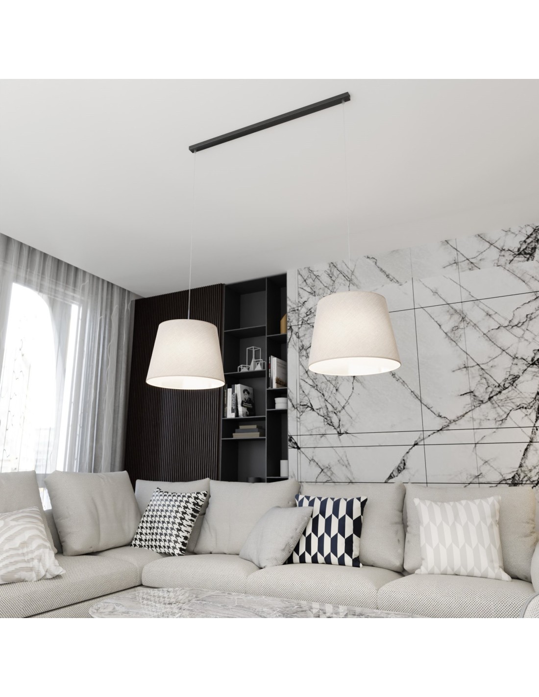 Model z dwoma punktami świetlnymi idealnie sprawdzi się w pomieszczeniach o średniej wielkości. Dzięki regulowanej wysokości montażu, EPOCA może być zawieszona zarówno nisko nad stołem, jak i wyżej w otwartych przestrzeniach. Abażury, pełniące rolę osłon żarówek, rozpraszają światło równomiernie i tworzą nastrojowe oświetlenie. To rozwiązanie dla osób ceniących ponadczasowy styl, harmonię oraz wysoką jakość wykonania.