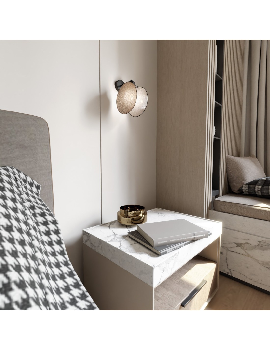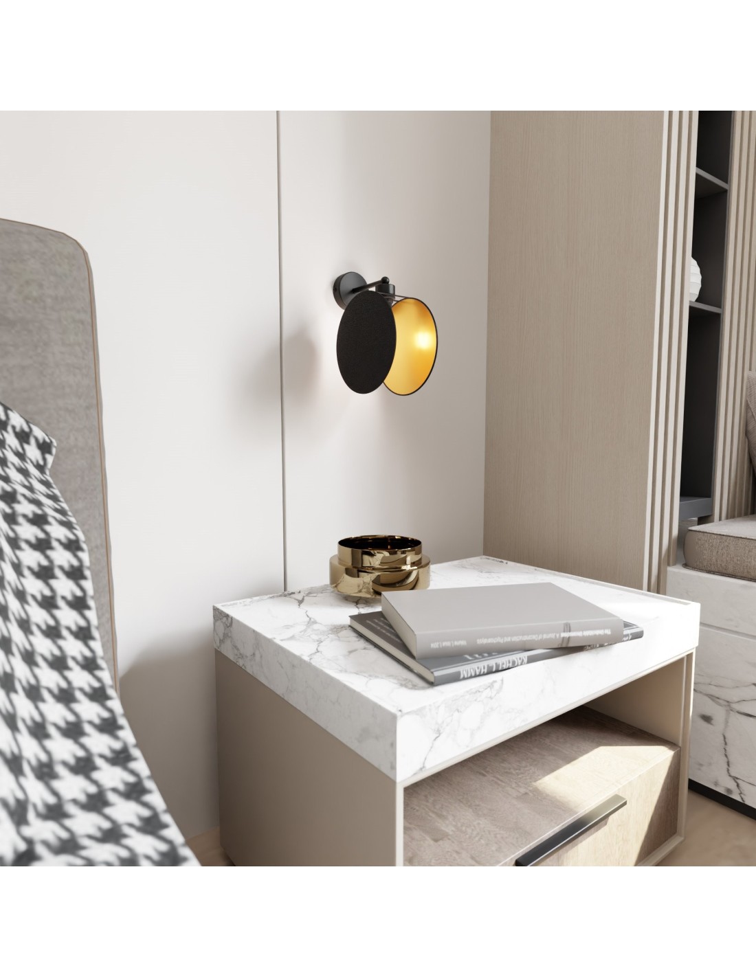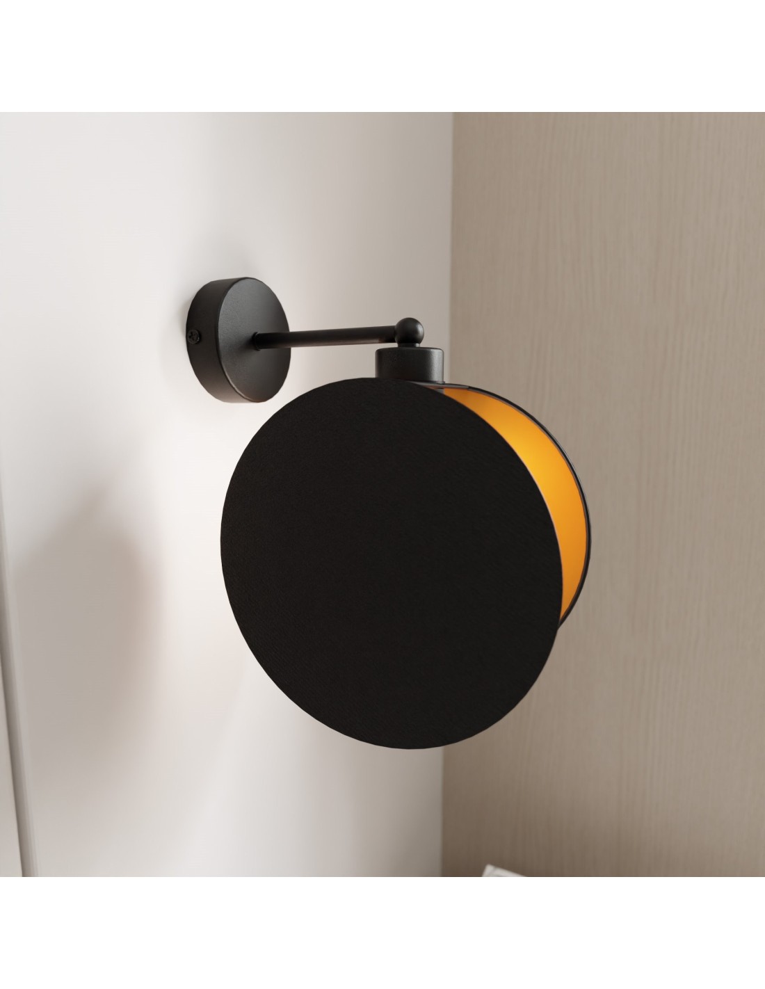 Dzięki swojemu prostemu, lecz wyrafinowanemu designowi, kinkiet MOTIF harmonizuje zarówno z wnętrzami nowoczesnymi, minimalistycznymi, jak i klasycznymi czy inspirowanymi stylem japandi. Abażur o wymiarach 20x20 cm wykonany z tkaniny delikatnie rozprasza światło, nadając pomieszczeniu ciepły i nastrojowy klimat. Metalowa konstrukcja w połączeniu ze złoto-czarną kolorystyką dodaje całości nowoczesnego szyku.