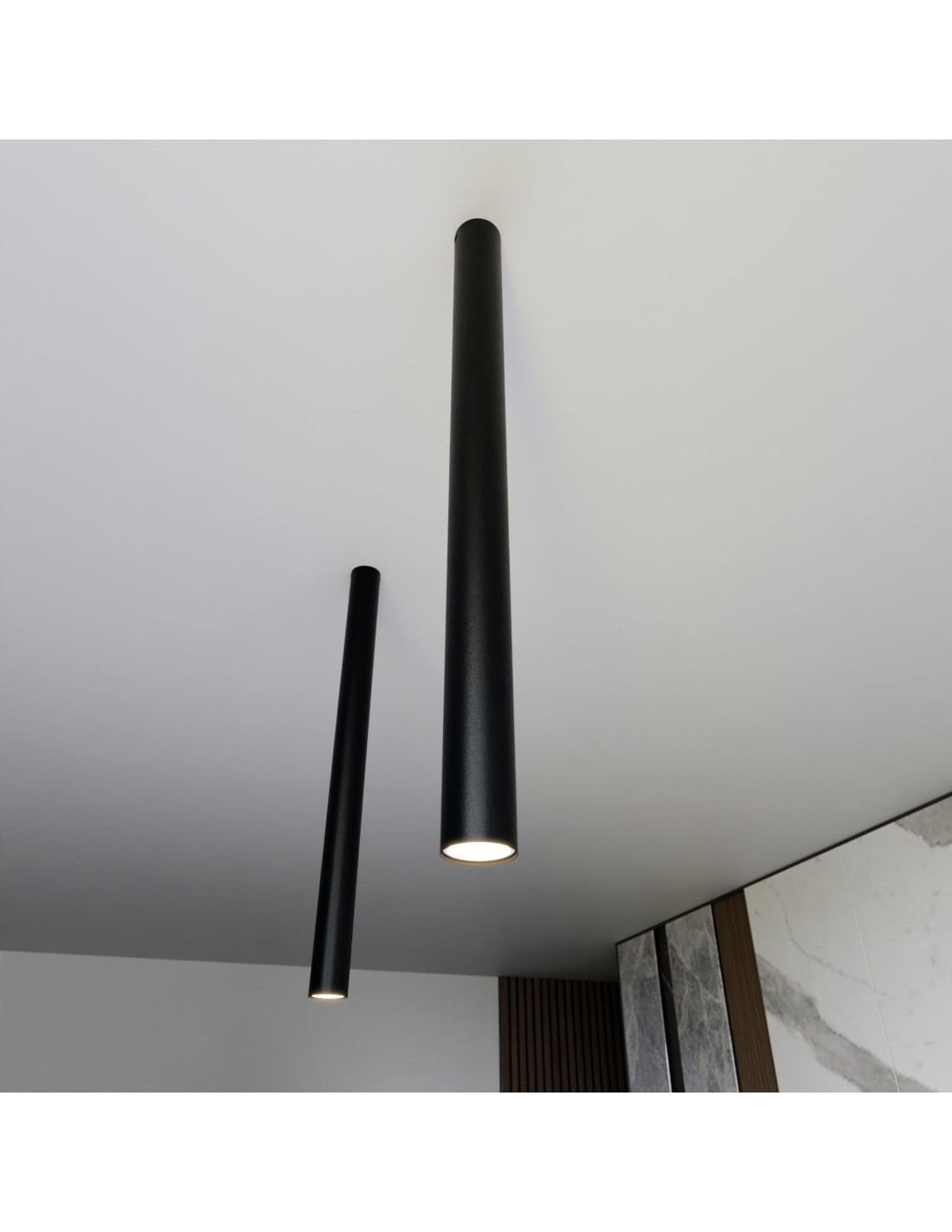 TECNO 1XXL to lampa zaprojektowana z myślą o dużych przestrzeniach i wysokich pomieszczeniach, gdzie klasyczne rozwiązania mogą okazać się niewystarczające. Jej podłużny, smukły korpus nie posiada regulacji wysokości, co podkreśla jej architektoniczny charakter. Otwarte zakończenie tuby nie ogranicza strumienia światła, pozwalając na uzyskanie mocnego efektu punktowego oświetlenia – idealnego do zastosowania w roli lampy akcentującej.