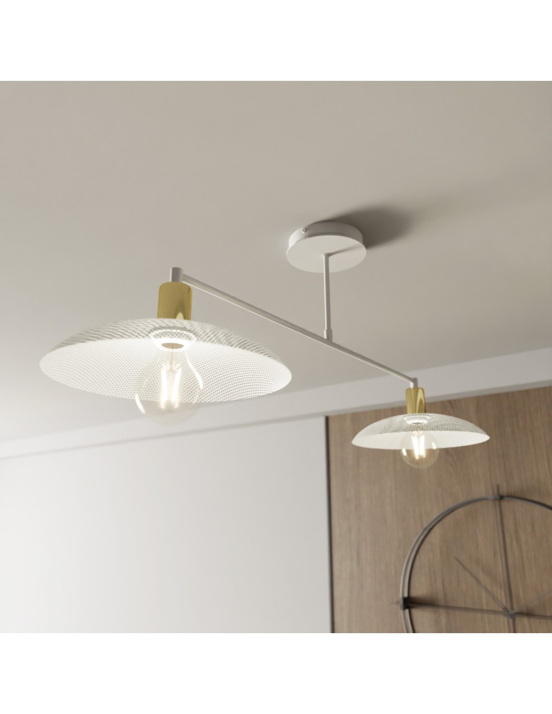 Lampa SPIRIT w wersji dwupunktowej to idealna propozycja dla osób, które cenią połączenie loftowej surowości z eleganckim wykończeniem. Dzięki obecności dwóch metalowych kloszy lampa zapewnia jeszcze lepsze oświetlenie przestrzeni, jednocześnie stanowiąc wyrazisty akcent dekoracyjny we wnętrzu. Charakterystyczna faktura kloszy oraz złote wnętrze odbijające światło, tworzą przytulną atmosferę i nadają pomieszczeniu stylowego charakteru. Ta wersja lampy SPIRIT sprawdzi się zarówno nad stołem jadalnianym, wyspą kuchenną, jak i w salonie czy nowoczesnym biurze.