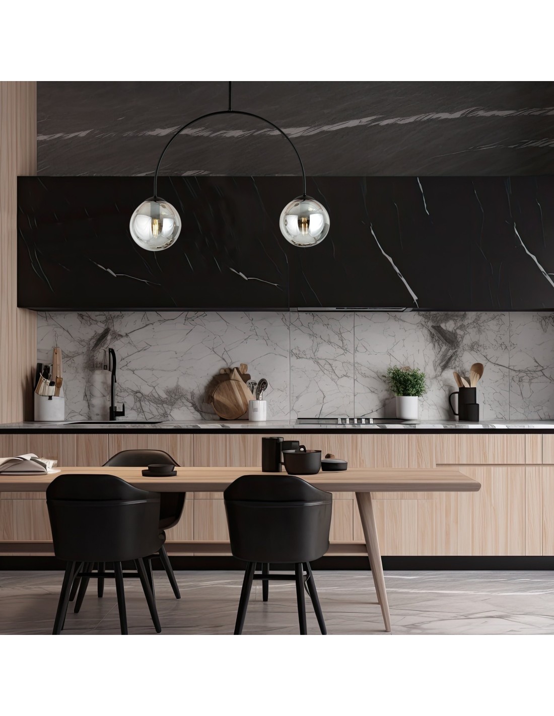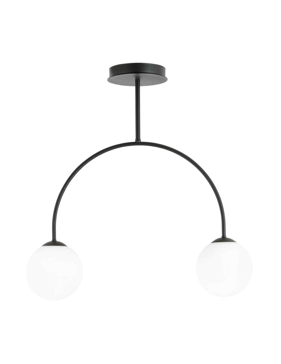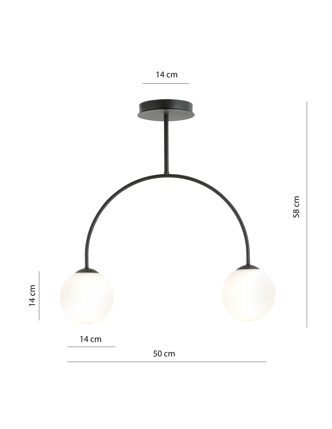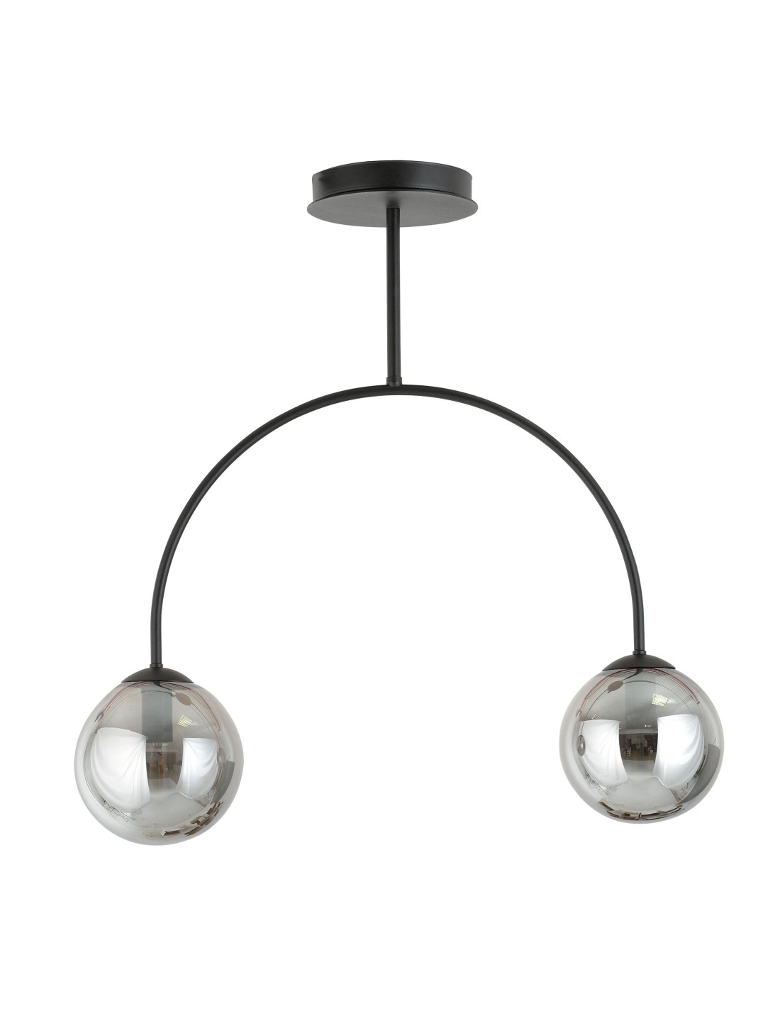 ARCHI 2 wyróżnia się staranie zaprojektowaną konstrukcją, która wpisuje się w najnowsze trendy wnętrzarskie. Dwa symetryczne ramiona zakończone okrągłymi kloszami o średnicy 15 cm wykonane ze szkła grafitowego prezentują się niezwykle nowocześnie i subtelnie zarazem. Konstrukcja lampy bazuje na metalowym, czarnym stelażu, który stanowi solidną podstawę dla delikatnych szklanych elementów.
