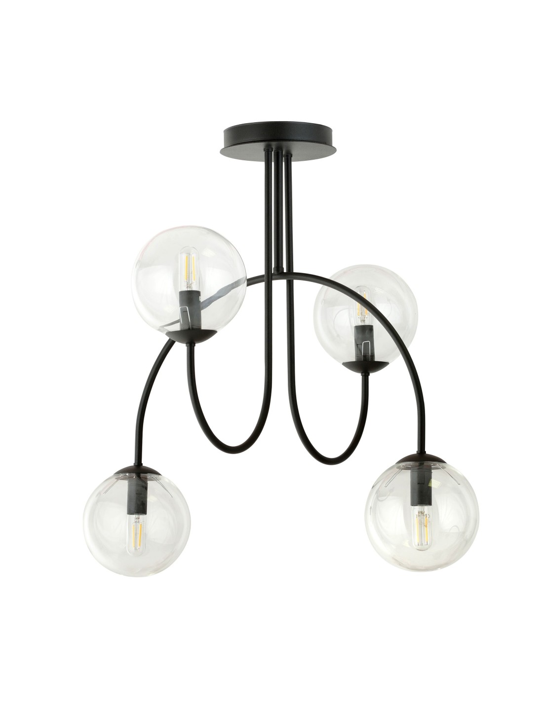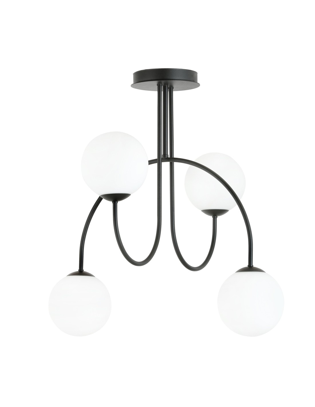 ARCHI 4A wyróżnia się staranie zaprojektowaną konstrukcją, która wpisuje się w najnowsze trendy wnętrzarskie. Cztery symetryczne ramiona zakończone okrągłymi kloszami o średnicy 15 cm wykonane ze szkła grafitowego prezentują się niezwykle nowocześnie i subtelnie zarazem. Konstrukcja lampy bazuje na metalowym, czarnym stelażu, który stanowi solidną podstawę dla delikatnych szklanych elementów.
