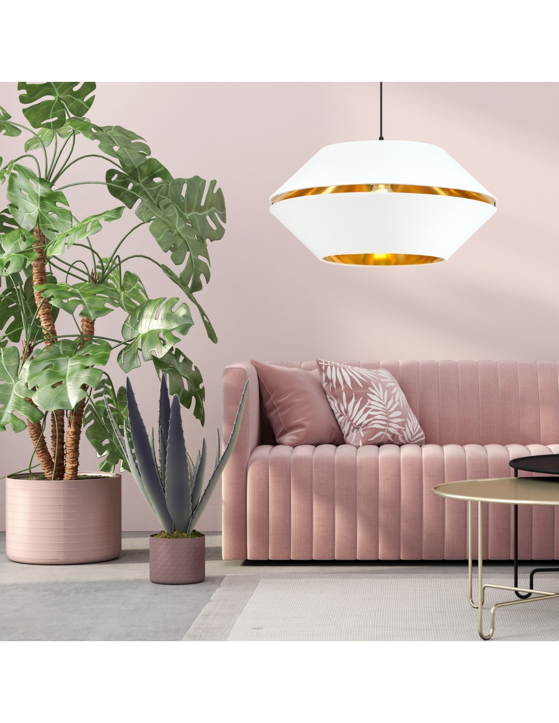 Konstrukcja lampy została utrzymana w duchu minimalizmu, ale każdy jej detal świadczy o dbałości o estetykę i funkcjonalność. Lampa dostępna jest w dwóch wariantach kolorystycznych: czarno-złotym, który wprowadza nutę wyrazistości i elegancji, oraz biało-złotym, rozświetlającym przestrzeń lekkością i świeżością. Dzięki temu można ją z łatwością dopasować do charakteru wnętrza.