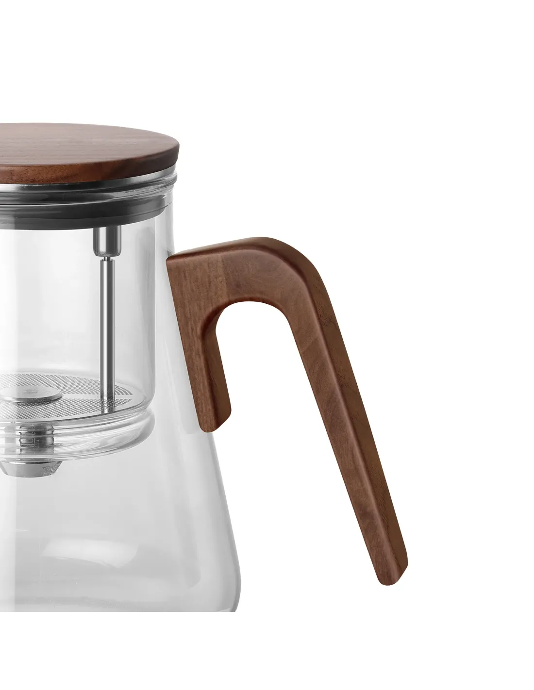 Czajniczek BONSTON wyróżnia się rozwiązaniem, które łączy prostą obsługę z dopracowaną formą. Zastosowanie magnesu neodymowego pozwala na magnetyczne domykanie pokrywy, a jednocześnie umożliwia uruchomienie filtra poprzez przekręcenie pokrywki. Dzięki temu zyskujesz większą kontrolę nad intensywnością naparu: w odpowiednim momencie oddzielasz liście od płynu, ograniczając gorycz i uzyskując klarowny smak. Dodatkowym wyróżnikiem jest pokrywa z drzewa orzechowego, która nadaje całości elegancki, naturalny wygląd i sprawia, że czajniczek prezentuje się wyjątkowo stylowo podczas serwowania zarówno gorących herbat, jak i chłodnych napojów.
