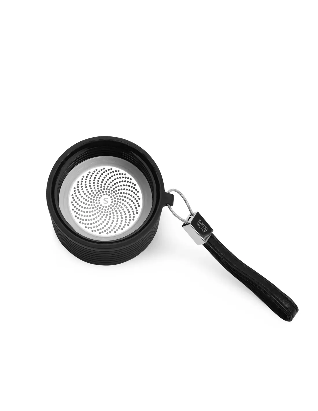 Sercem zestawu jest drobny filtr ze stali nierdzewnej, który umożliwia parzenie herbaty liściastej, ziół oraz innych ulubionych naparów. Filtr skutecznie zatrzymuje drobinki, dzięki czemu napój pozostaje klarowny i przyjemny w piciu. Zaparzacz zaprojektowano tak, aby łatwo oddzielać liście od gotowego naparu, co pomaga kontrolować czas parzenia i zachować delikatność smaku – szczególnie ważną przy zielonych herbatach czy kwiatowych kompozycjach.