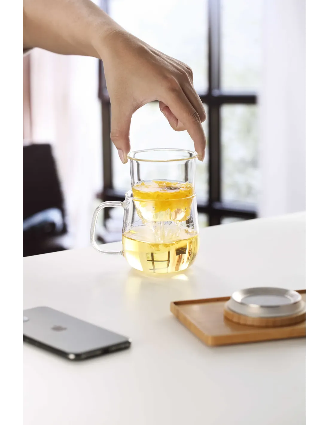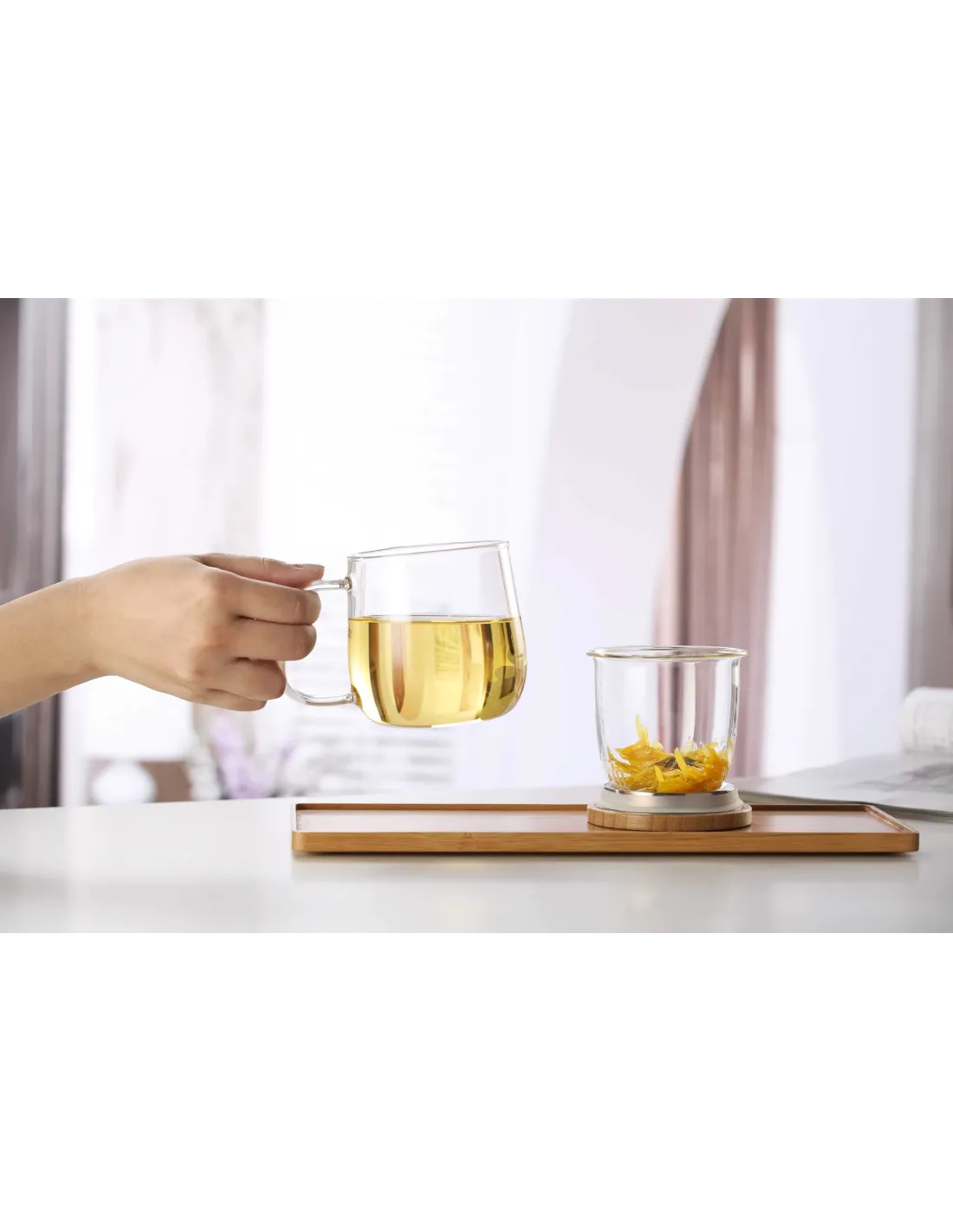 - Szklany zaparzacz – parzenie bez fusów i łatwe oddzielenie liści