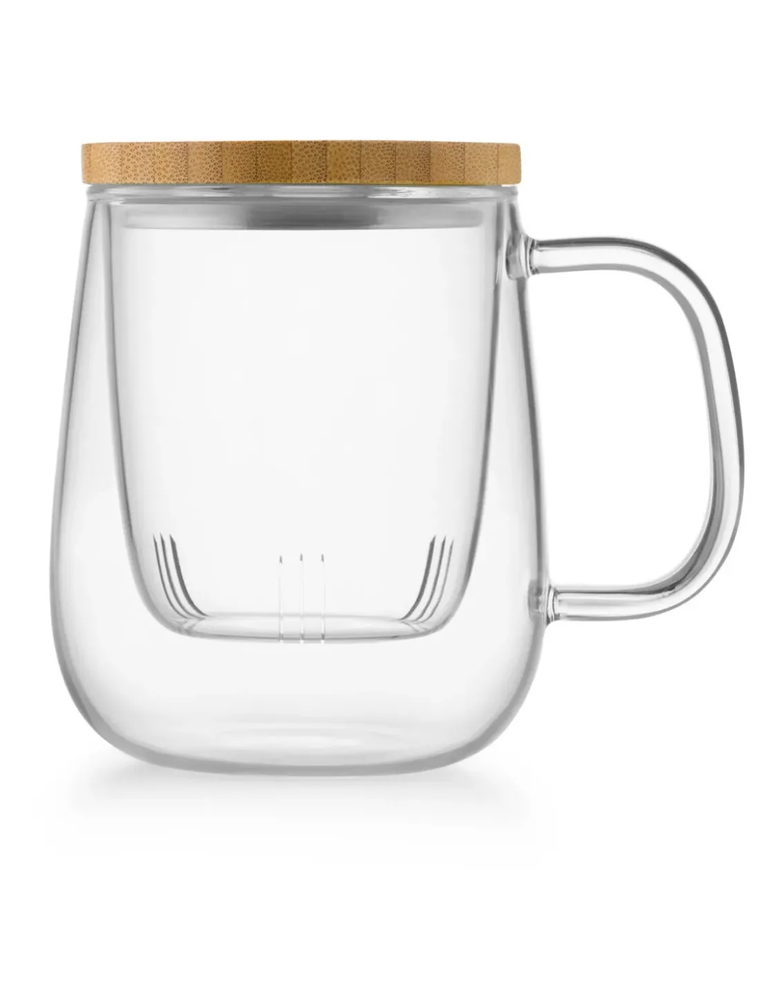 W zestawie znajduje się szklany zaparzacz, dzięki któremu przygotujesz herbatę lub zioła bez fusów w napoju. To rozwiązanie bardzo praktyczne: parzysz liście w osobnym wkładzie, a po osiągnięciu odpowiedniej mocy łatwo oddzielasz je od naparu. Dzięki temu możesz zachować delikatność smaku i uniknąć zbyt długiego parzenia, które często powoduje goryczkę. Całość zamyka pokrywka wykonana ze stali i drewna bambusowego odpornego na działanie wilgoci. Taka pokrywka pomaga utrzymać temperaturę naparu, osłania zawartość i dodaje całości eleganckiego, naturalnego charakteru – bambus pięknie komponuje się z przezroczystym szkłem.