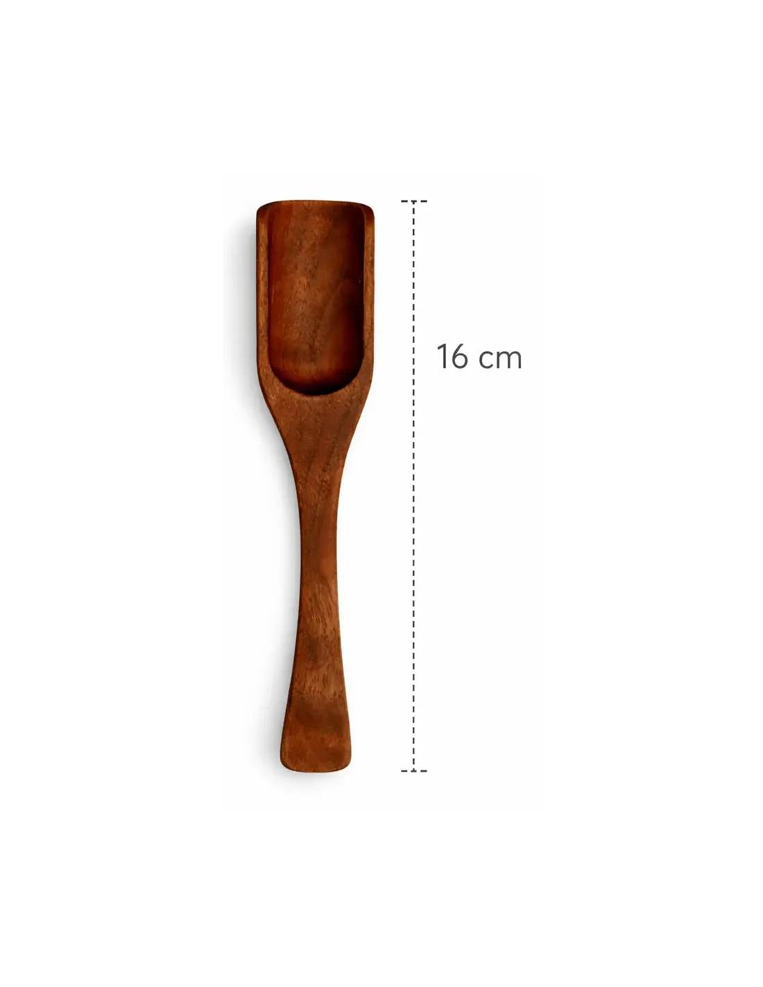 Drewno orzechowe jest znane z trwałości oraz odporności na codzienne użytkowanie, dlatego akcesorium świetnie sprawdza się zarówno w kuchni, jak i w kąciku herbacianym. Gładko wyprofilowana forma ułatwia wygodne nabieranie liści, mieszanek ziołowych czy przypraw bez rozsypywania. Możesz precyzyjnie odmierzyć porcję do zaparzacza, puszki, słoika lub bezpośrednio do dzbanka, a dzięki długości ok. 16 cm szpatułka dobrze leży w dłoni i pozwala swobodnie sięgać do głębszych pojemników.