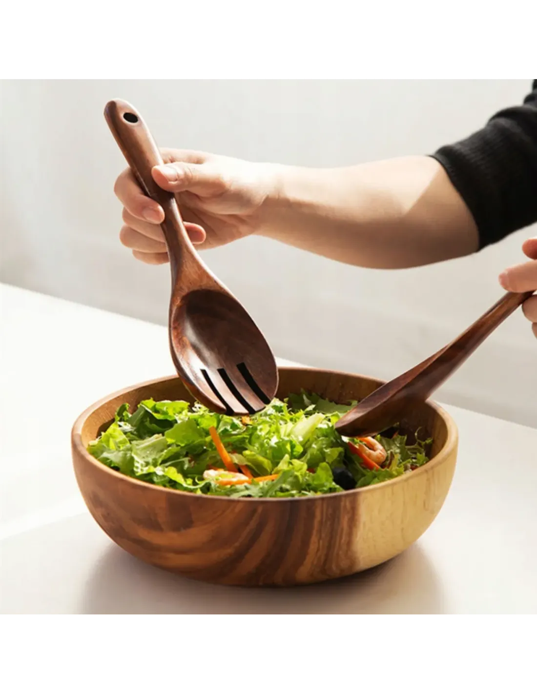 Na uwagę zasługuje też perfekcyjne wykonanie: każdy element powstaje z jednego kawałka litego drewna, bez klejenia i łączeń, co przekłada się na trwałość i odporność na codzienne użytkowanie. Powierzchnia jest wielokrotnie polerowana, dzięki czemu przybory są przyjemne w dotyku, gładkie i wolne od drzazg. Warto pamiętać, że to naturalny materiał – poszczególne akcesoria mogą się nieco różnić usłojeniem oraz barwą, co jest normalne i dodaje im unikalnego charakteru. Taki komplet to także świetny pomysł na prezent: elegancki, praktyczny i pasujący do wielu stylów kuchni.