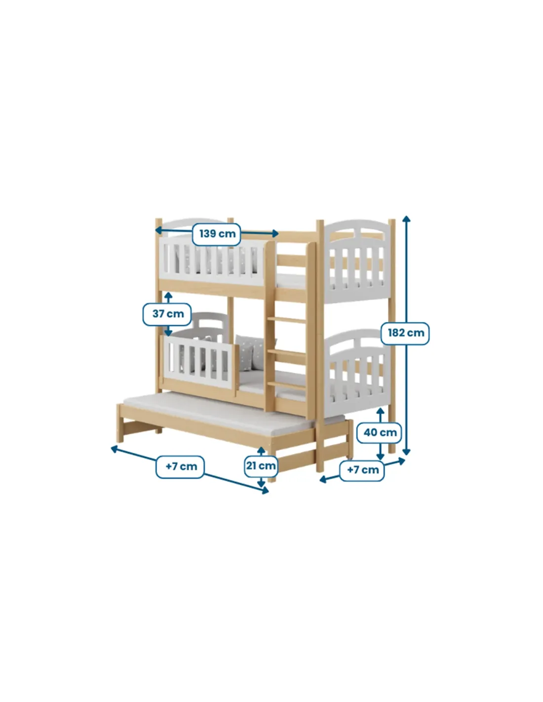 Funkcjonalne łóżko piętrowe drewniane z wysuwanym trzecim poziomem - dla rodzeństwa do pokoju