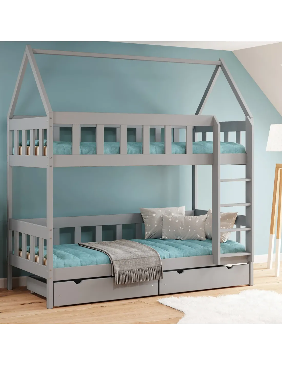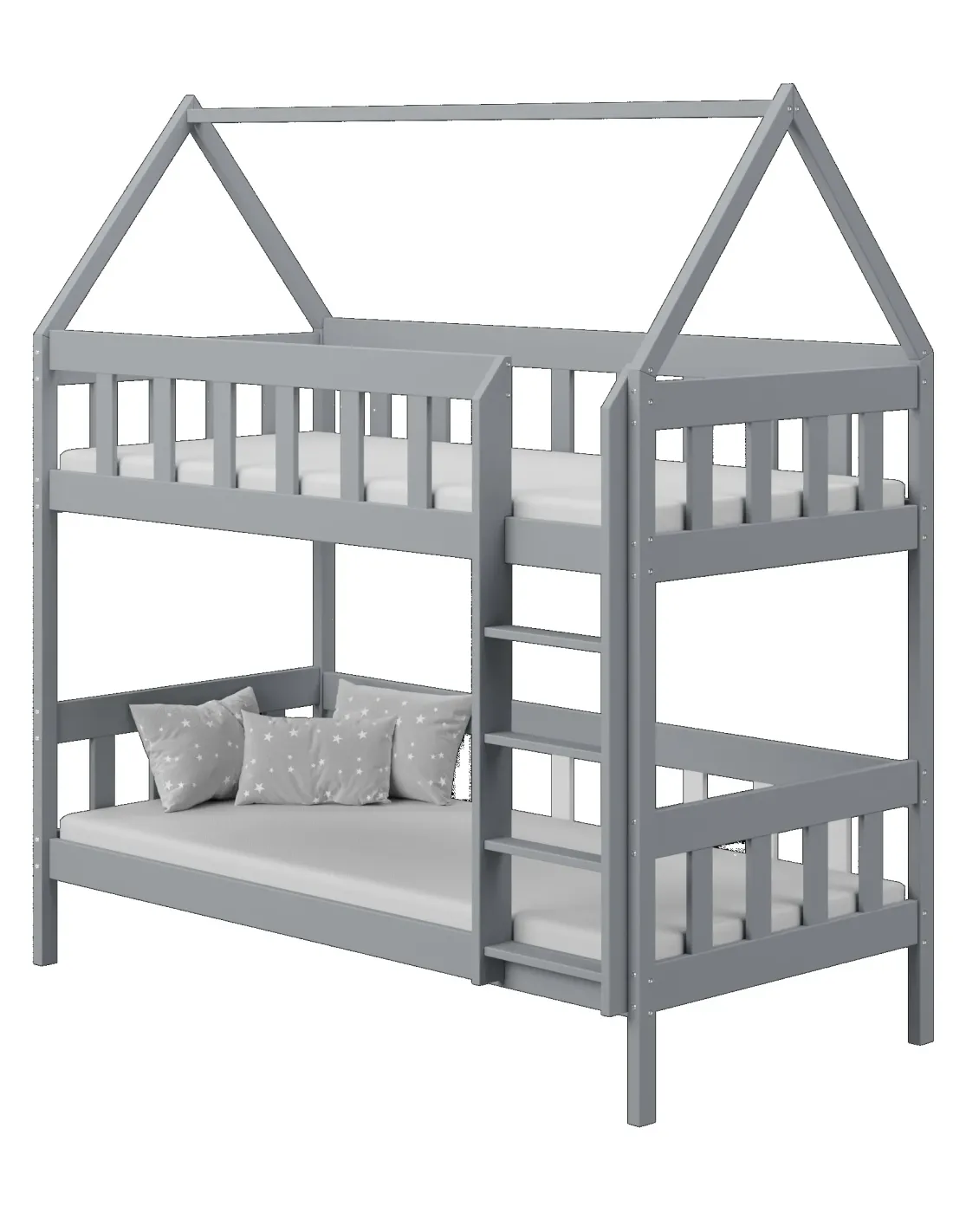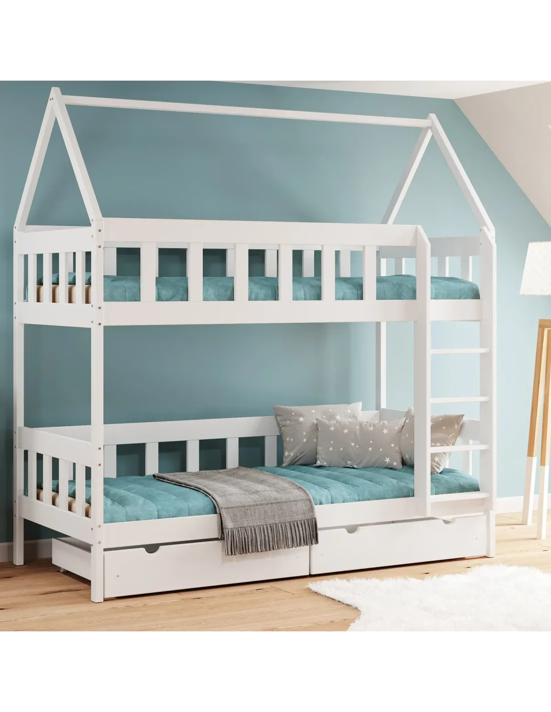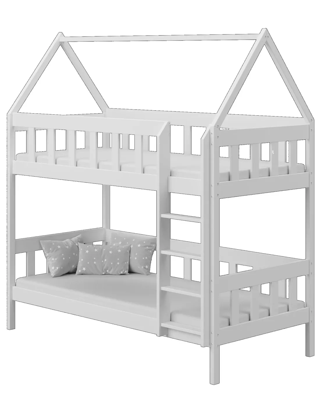 DOMEK CHWAT to nowoczesne łóżko drewniane piętrowe, które dzięki unikalnej formie domku doskonale wpisuje się w potrzeby pokoi dziecięcych i wspólnych pokoi, gdzie liczy się każdy centymetr. To funkcjonalne rozwiązanie, które łączy w sobie funkcjonalność miejsca do snu, przestrzeni do zabawy oraz estetykę funkcjonalnych i estetycznych mebli. Skandynawski charakter, minimalistyczne wykończenie i ponadczasowy design sprawiają, że model świetnie odnajduje się zarówno w nowoczesnych, jak i bardziej klasycznych aranżacjach. Model DOMEK CHWAT to łóżko piętrowe 2-osobowe, które stanowi idealne rozwiązanie dla rodzin, a szczególnie jako wybór dla rodzeństwa oraz opcja dla rodzin z dwójką dzieci. Dwa miejsca do spania pozwalają na efektywne wykorzystanie przestrzeni i pomagają wykorzystać dostępną przestrzeń w pokoju dziecka. Jest to więc praktyczna propozycja dla domów, w których ważne jest maksymalne wykorzystanie przestrzeni, ale także dla miejsc takich jak hostelach czy pensjonatach, gdzie funkcjonalność odgrywa istotną rolę.