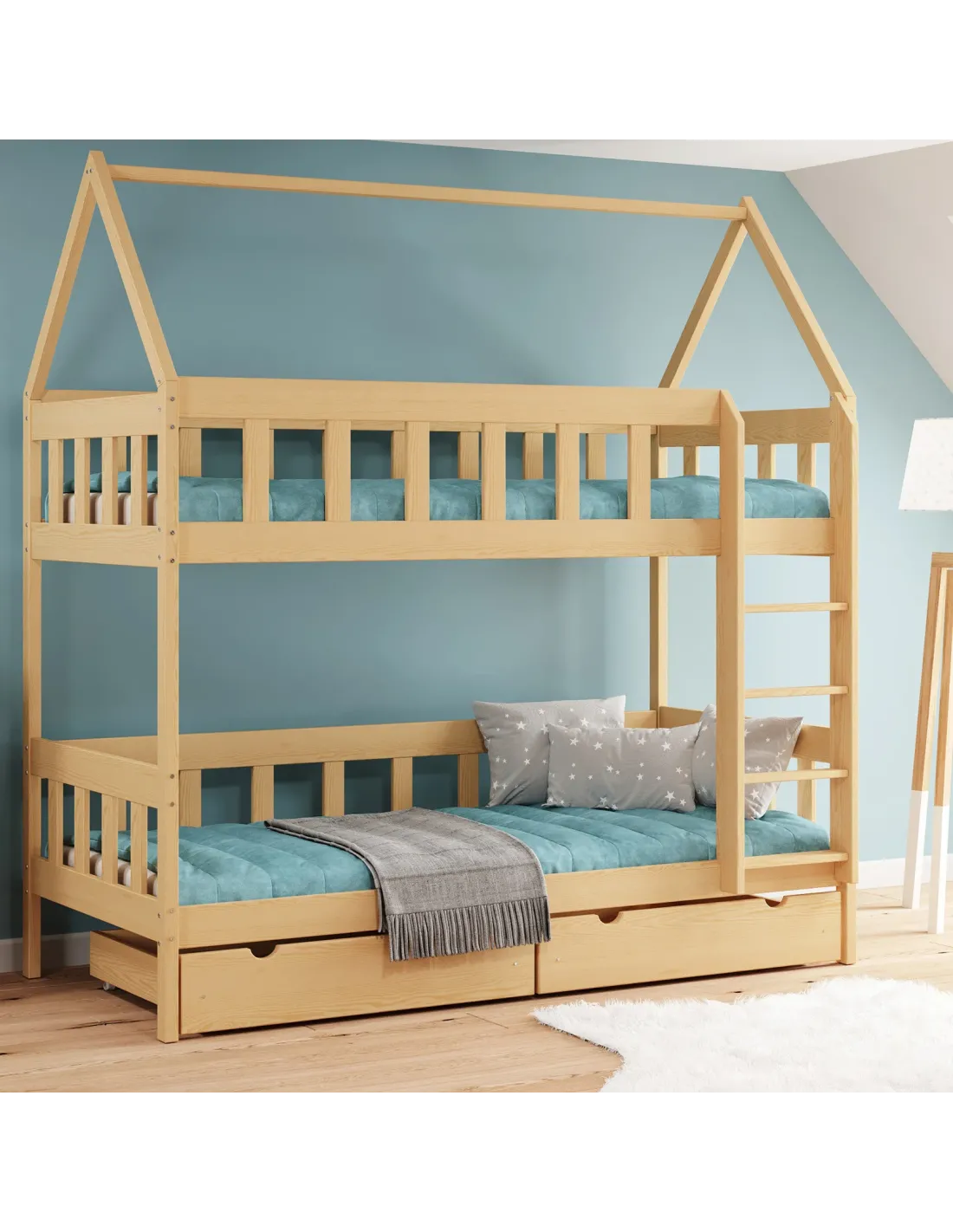 Łóżko piętrowe drewniane DOMEK CHWAT MEBLE WRÓBEL