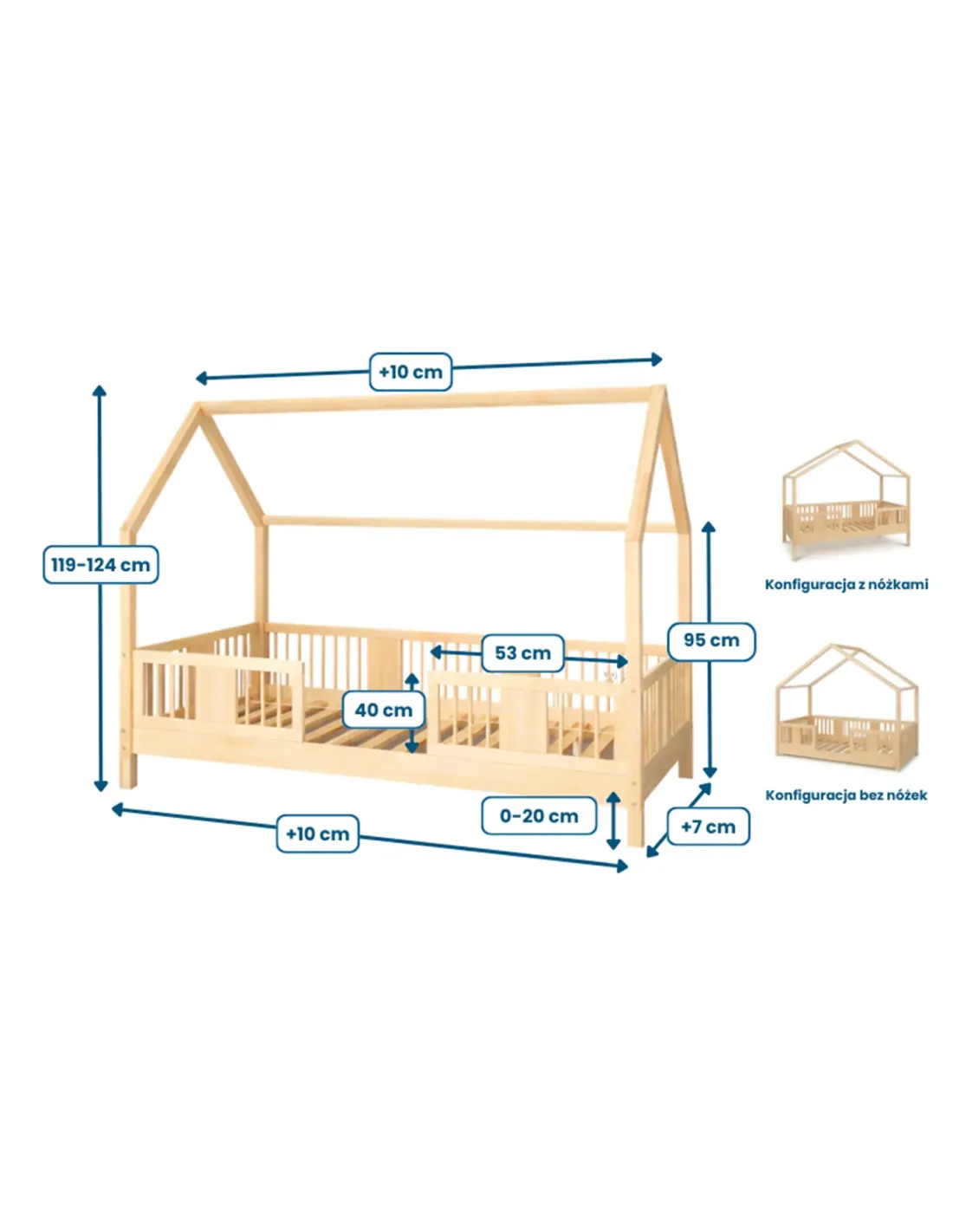 Przy wyborze wysokości łóżka prosimy o wpisanie wybranej opcji w polu Dostosowywanie produktu podczas składania zamówienia.