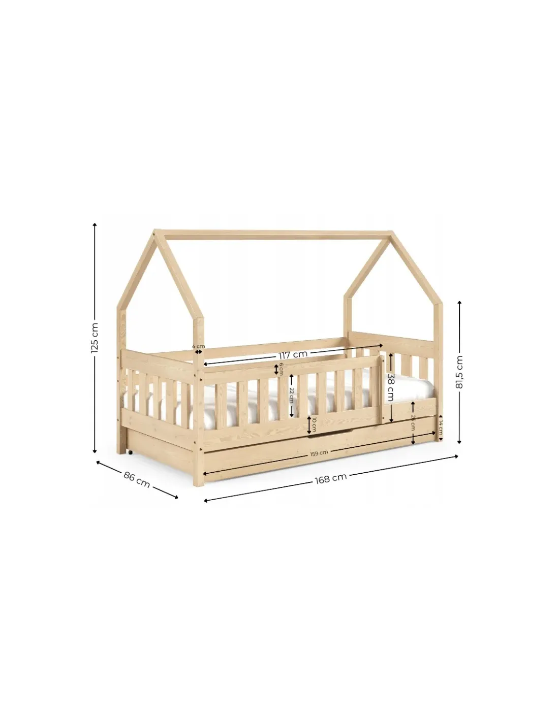 Jeśli szukasz bezpiecznego, niskiego łóżka, które będzie idealnym pierwszym krokiem po łóżeczku niemowlęcym, łóżko dziecięce LUNA LONG będzie doskonałym rozwiązaniem. Ten naturalny, drewniany mebel został zaprojektowany tak, aby zapewnić dziecku maksymalny komfort, wysokie poczucie bezpieczeństwa oraz komfort snu. Dzięki swojej przemyślanej konstrukcji jest to idealne łóżko do pierwszego samodzielnego spania dla jednej osoby, które jednocześnie wprowadza do wnętrza przyjemną przytulność i naturalną estetykę. Model wykonano z wysokiej jakości drewna sosnowego, dlatego należy do trwałej kategorii łóżka drewniane, które wyróżniają się stabilnością i długą żywotnością. Starannie dopracowana konstrukcja oraz solidny stelaż pod materac zapewniają odpowiednie podparcie ciała, co bezpośrednio wpływa na jakość snu oraz codzienny komfort dziecka. Dzięki temu jest to funkcjonalny i bezpieczny mebel, który doskonale sprawdzi się w przestrzeni dziecięcej.