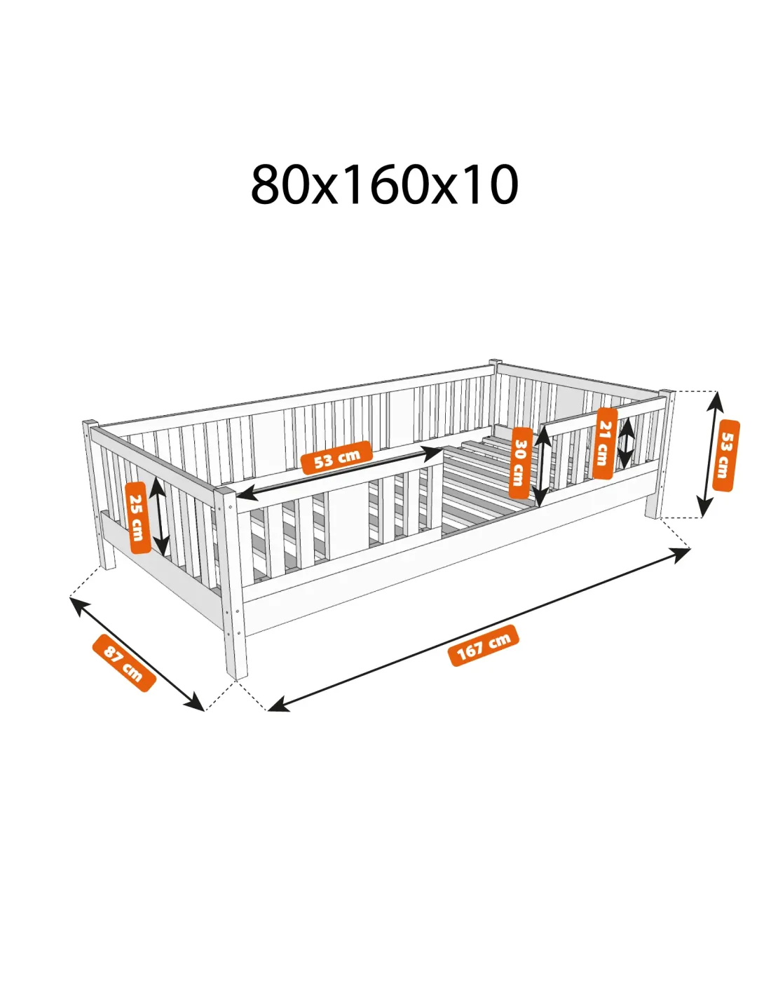 Dużą zaletą modelu NIKO jest dostępność w trzech wariantach wysokości ramy: 0 cm, 10 cm oraz 20 cm. Dzięki temu wybór łóżka można łatwo dopasować do wieku dziecka, jego potrzeb oraz charakteru wnętrza. Wersja 0 cm będzie świetnym rozwiązaniem dla najmłodszych dzieci, ponieważ zapewnia niski poziom spania i większe bezpieczeństwo. Wariant 10 cm to praktyczny kompromis pomiędzy wygodą użytkowania a łatwiejszym utrzymaniem czystości, natomiast wersja 20 cm daje większy prześwit pod łóżkiem i poprawia wentylację materaca. Taki rozmiar łóżka w ujęciu wysokości pozwala lepiej dopasować model do codziennych potrzeb dziecka oraz rodziców. W modelu NIKO ogromny nacisk położono na detale wykończenia. Każdy element został dokładnie opracowany tak, aby zapewnić bezpieczeństwo nawet najmłodszym użytkownikom. Solidny stelaż pod materac gwarantuje odpowiednie podparcie ciała, co bezpośrednio wpływa na wysoki komfort snu oraz dobrą jakość snu. Dzięki temu łóżko sprawdza się jako wygodne miejsce do odpoczynku, regeneracji i codziennego spokojnego spania. To rozwiązanie praktyczne, które łączy bezpieczeństwo z estetyką i codzienną wygodą.