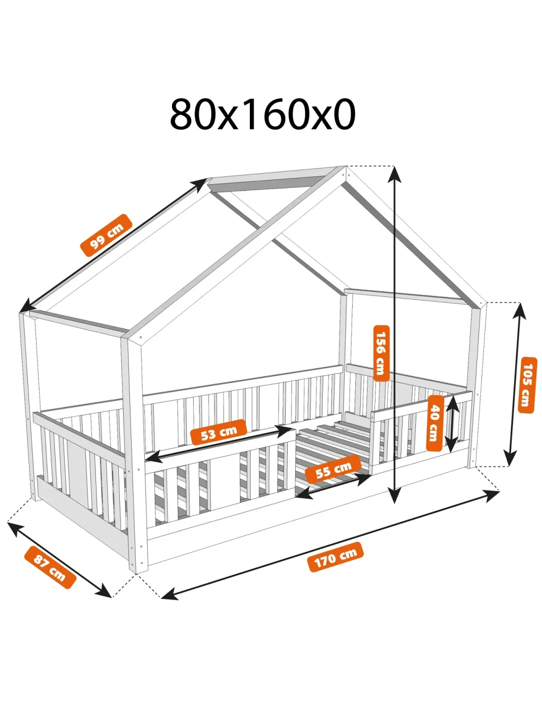 Model NIKO SHORT wyróżnia się charakterystycznym, krótszym daszkiem typu SHORT, który tworzy przytulną przestrzeń w formie domku, nie przytłaczając wnętrza pokoju. Taka forma sprzyja zarówno spokojnemu zasypianiu, jak i codziennej zabawie. Daszek można dekorować lampkami, girlandami lub lekkimi tkaninami, tworząc wyjątkową aranżację pokoju dziecka. Dzięki temu łóżko dobrze wpisuje się w styl Montessori, skandynawski oraz naturalne wnętrza boho. To stylowy i jednocześnie funkcjonalny mebel, który wprowadza do wnętrza wyjątkową przytulność. Ogromnym atutem modelu NIKO SHORT jest możliwość wyboru trzech wariantów wysokości ramy: 0 cm, 10 cm oraz 20 cm. Dzięki temu wybór łóżka można dopasować do wieku dziecka oraz potrzeb rodziny. Wariant 0 cm to najniższa i najbezpieczniejsza wersja dla maluchów – rama znajduje się tuż przy podłodze i minimalizuje ryzyko upadku. Opcja 10 cm zapewnia kompromis pomiędzy bezpieczeństwem a łatwiejszym utrzymaniem czystości pod łóżkiem. Natomiast wariant 20 cm oferuje większą przestrzeń pod konstrukcją, co sprawdza się u starszych dzieci i ułatwia codzienne sprzątanie. Taki rozmiar łóżka w zakresie wysokości pozwala dopasować model do indywidualnych potrzeb użytkownika.