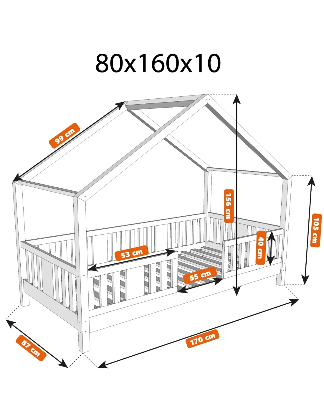 • Forma domku pozwala tworzyć przytulną przestrzeń do snu, zabawy i rozwijania dziecięcej wyobraźni