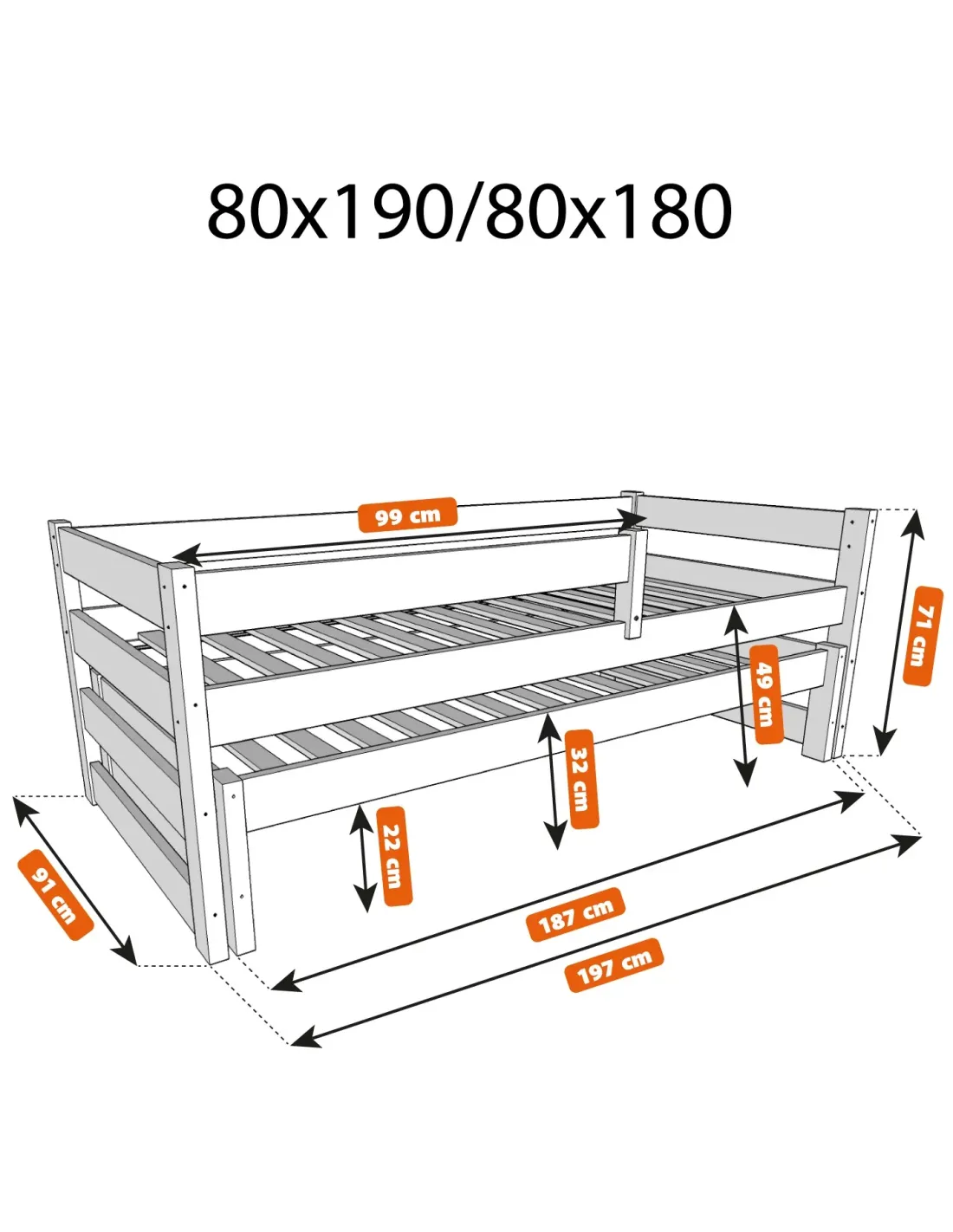 Model PAWEŁEK DUO został wyposażony w dwa drewniane stelaże pod materace, co zwiększa funkcjonalność całego zestawu i pozwala od razu przygotować mebel do dalszego wyposażenia. Przemyślana forma, odpowiednia wysokość całkowita wynosząca około 65–70 cm oraz estetyczne wykończenie sprawiają, że łóżko prezentuje się lekko, a jednocześnie oferuje wygodne i stabilne miejsce do snu. To mebel zaprojektowany dla osób, które oczekują połączenia naturalnego designu, praktycznego zastosowania i jakości, na której można polegać każdego dnia.