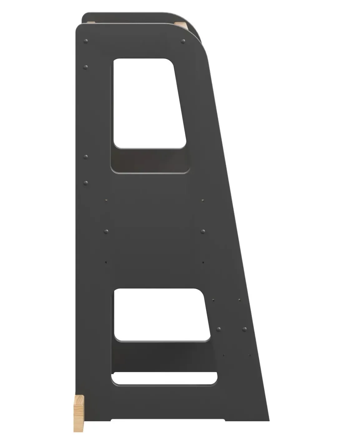 Kitchen Helper wykonany jest z połączenia drewna sosnowego oraz płyty MDF, co gwarantuje trwałość, odporność na codzienne użytkowanie oraz estetyczny wygląd. Boczne panele z malowanej płyty MDF zapewniają stabilność, natomiast stopnie i podest z litego drewna sosnowego zwiększają wytrzymałość całej konstrukcji. Mebel został pomalowany nietoksycznymi farbami wodnymi, bezpiecznymi dla dzieci i zgodnymi z normą EN 71-3.