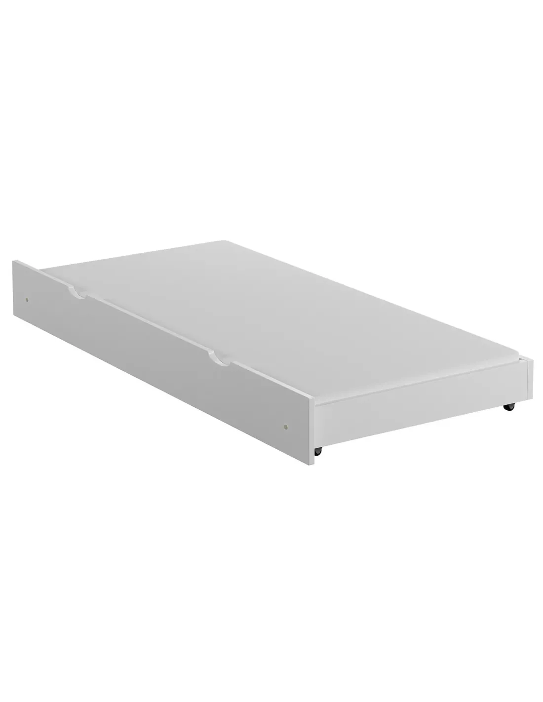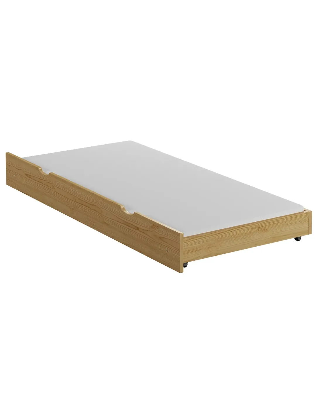 Konstrukcja szuflady została zaprojektowana z myślą o codziennym komforcie użytkowania. Wykonana z solidnego drewna sosnowego, cechuje się wysoką trwałością i stabilnością, co przekłada się na bezpieczeństwo podczas snu. Dzięki zastosowaniu systemu wysuwania na kółkach, szuflada porusza się płynnie i lekko – jej przygotowanie do snu nie wymaga siły ani wysiłku, nawet w przypadku młodszych użytkowników.