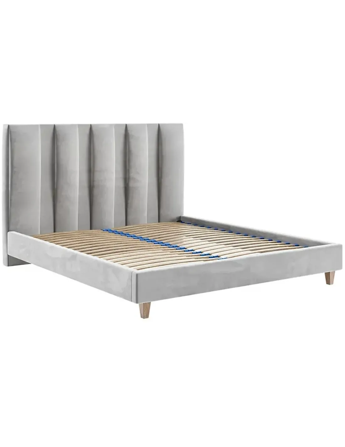 Łóżko tapicerowane do sypialni z dopasowanym zagłówkiem i elastycznym stelażem