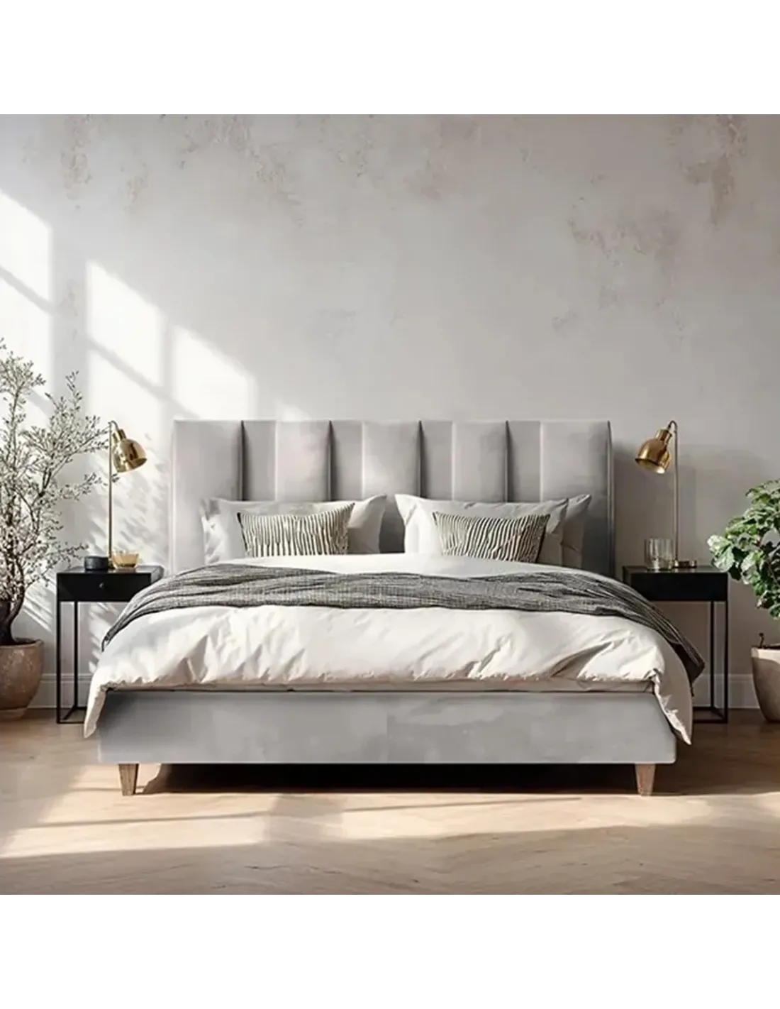 SALERNO LAVERTO wyróżnia się spokojną, harmonijną bryłą oraz detalami, które wprowadzają do sypialni przytulny, elegancki klimat. Charakterystyczne pionowe, głębokie przeszycia na zagłówku podkreślają nowoczesno-klasyczny styl, a drewniane, smukłe nogi dodają całości naturalnego ciepła i lekkości wizualnej. W zestawie otrzymujesz konstrukcję łóżka z nóżkami oraz stelaż elastyczny, który wspiera pracę materaca i sprzyja komfortowemu wypoczynkowi. W ofercie dostępne są różne warianty rozmiarowe, w tym popularne łóżka 160x200, 180x200, a także inne konfiguracje, dzięki czemu łatwo dobrać model do każdej sypialni. SALERNO może stanowić bazę do stworzenia kompletnej strefy snu – w połączeniu z odpowiednią pościelą, dodatkami oraz materacem tworzy spójny, komfortowy zestaw do codziennego wypoczynku. To propozycja dla osób, które cenią nowoczesne łóżka tapicerowane, estetyczny design, wysoką jakość wykonania oraz ponadczasową elegancję wpisującą się w aktualne trendy new elegance.