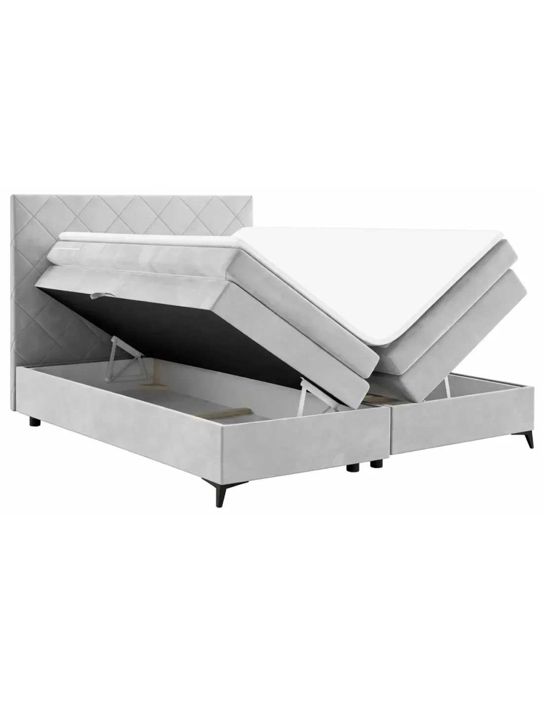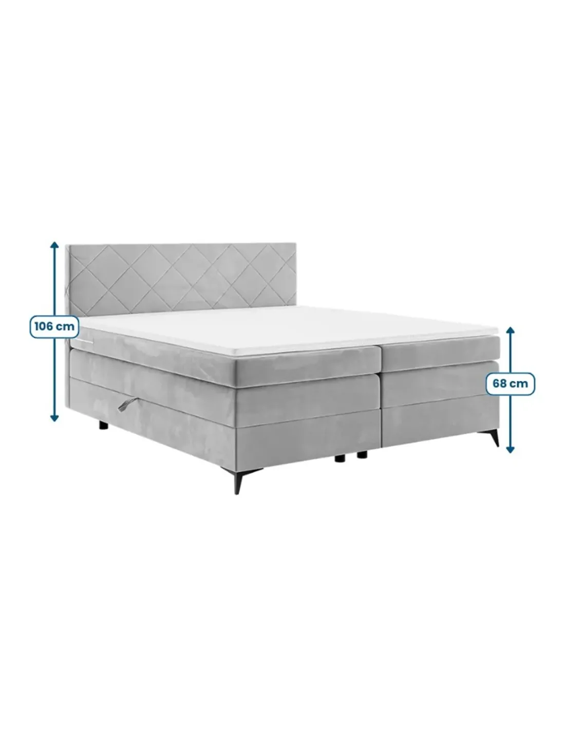 • W cenie: baza z materacem bonellowym + topper poliuretanowy + zagłówek + nóżki