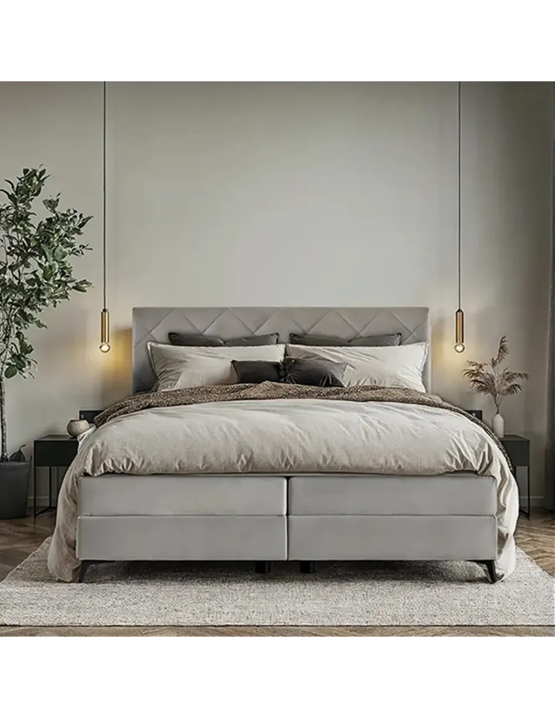 • Łóżko kontynentalne tapicerowane – wysoki komfort snu i elegancki wygląd do nowoczesnej sypialni